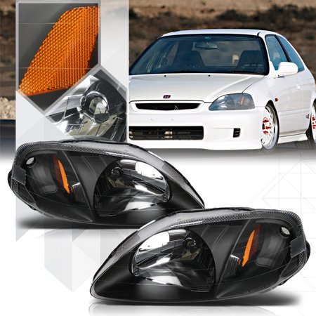 Black Housing Headlight Amber Corner Turn Signal Reflector for 99-00 Honda Civic