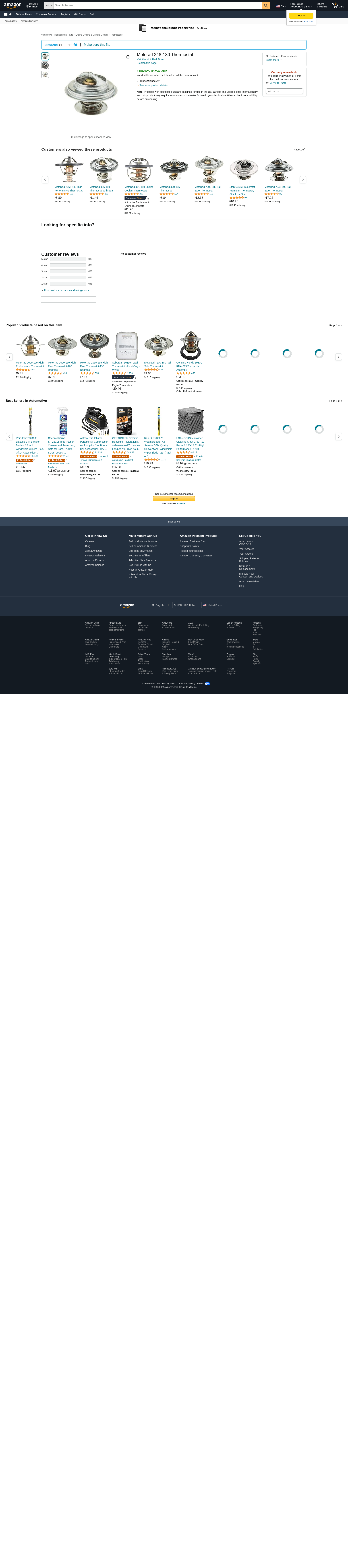 | Feature | Motorad Engine Coolant Thermostat 248-180 |