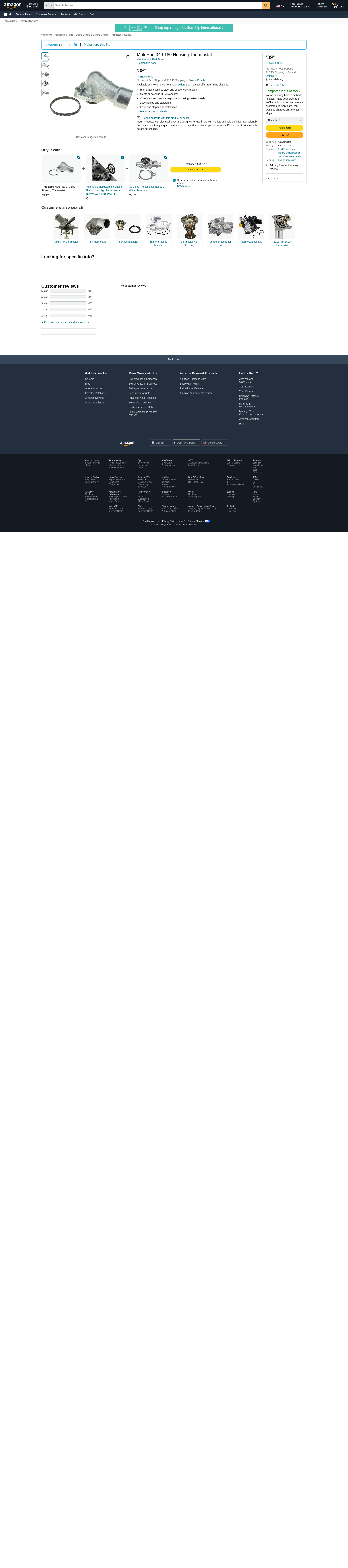 MotoRad 349-180 Housing Thermostat