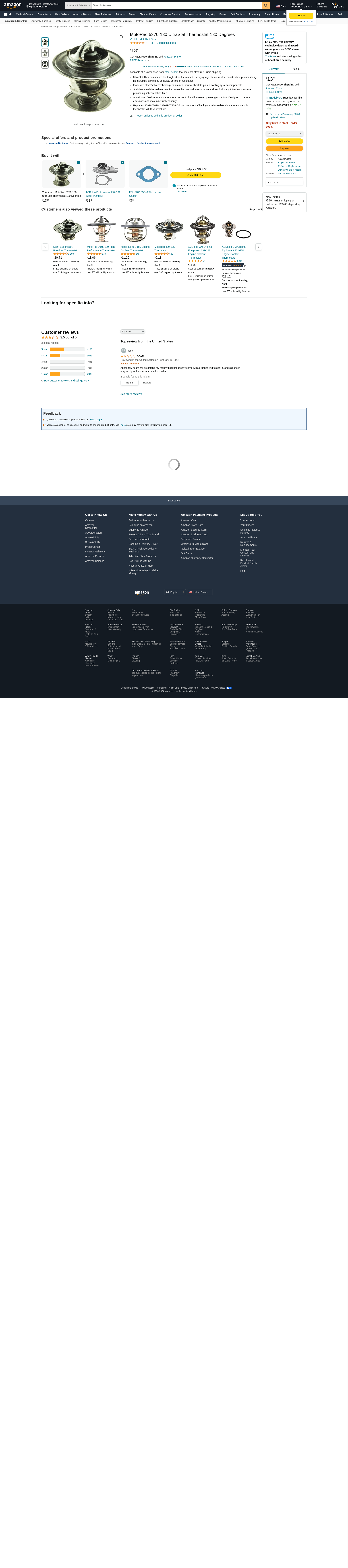 MotoRad 5270-180 UltraStat Thermostat-180 Degrees