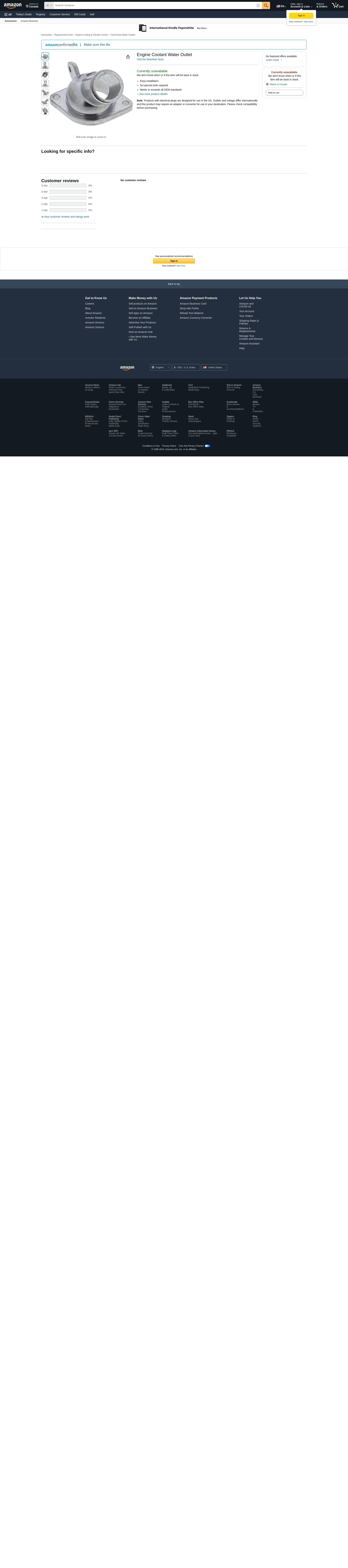 Engine Coolant Water Outlet