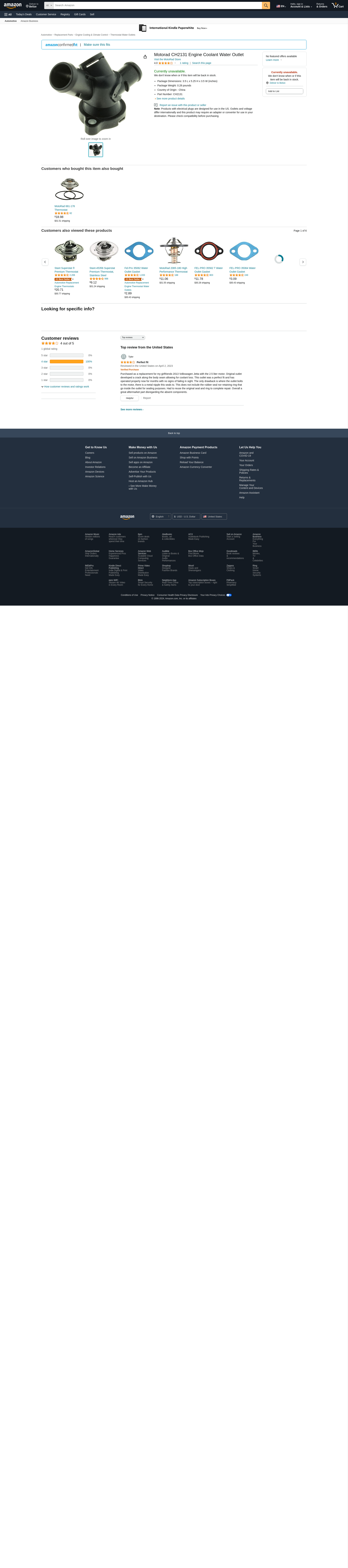 Motorad CH2131 Engine Coolant Water Outlet