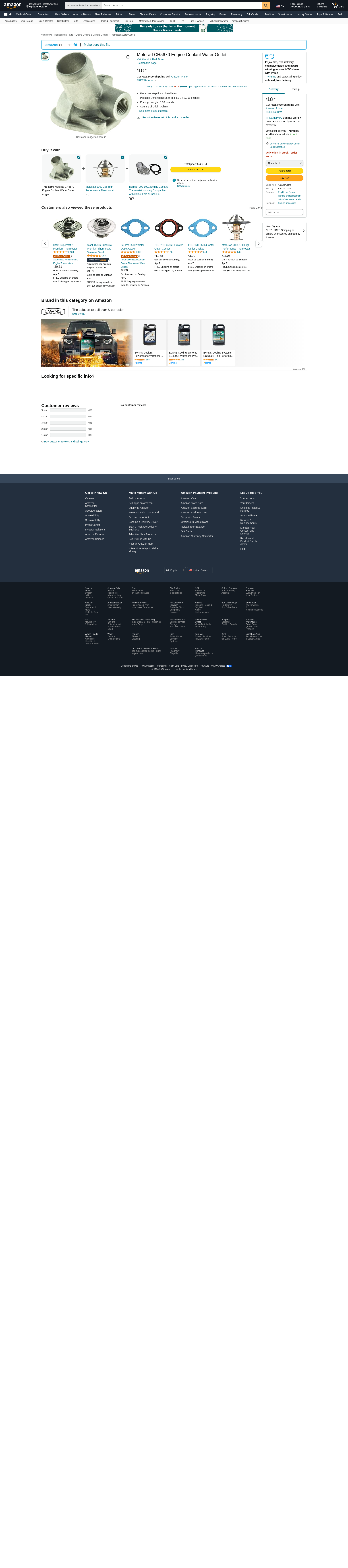 Motorad CH5670 Engine Coolant Water Outlet