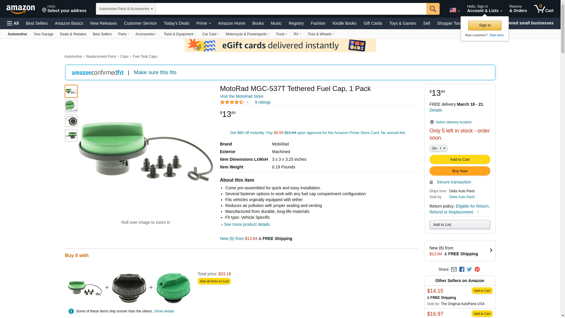 MotoRad MGC-537T Tethered Fuel Cap, 1 Pack