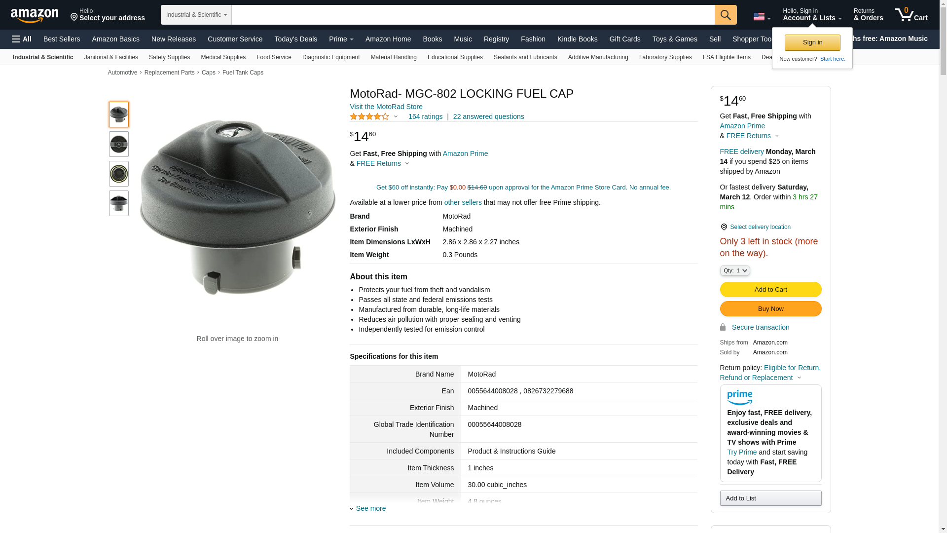 MotoRad MGC802 Fuel Tank Cap| RV and Auto Parts