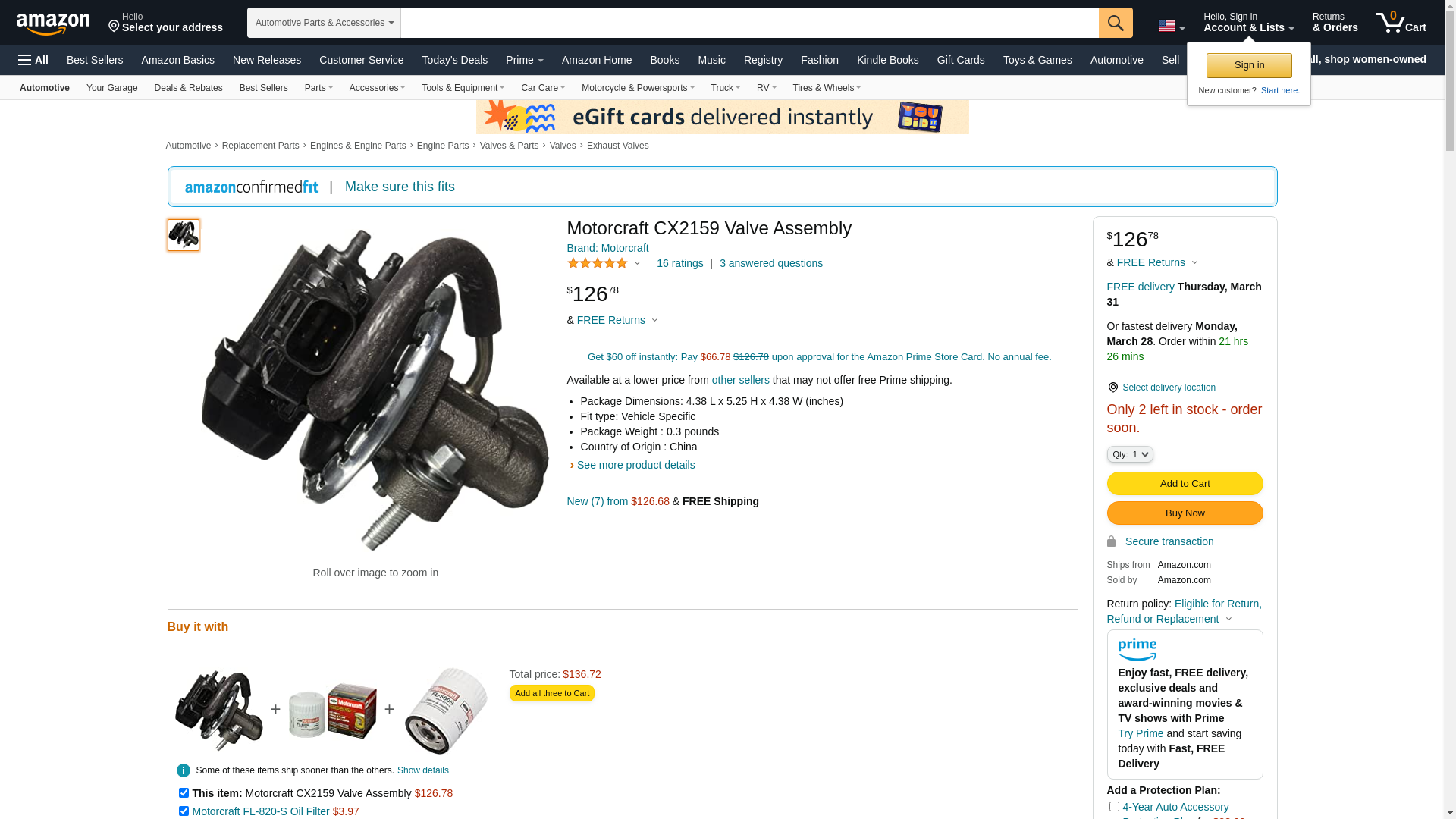 | StockWise Auto | MTC-CX2159 | 1 | 1 | 1 @ $114.22 | |