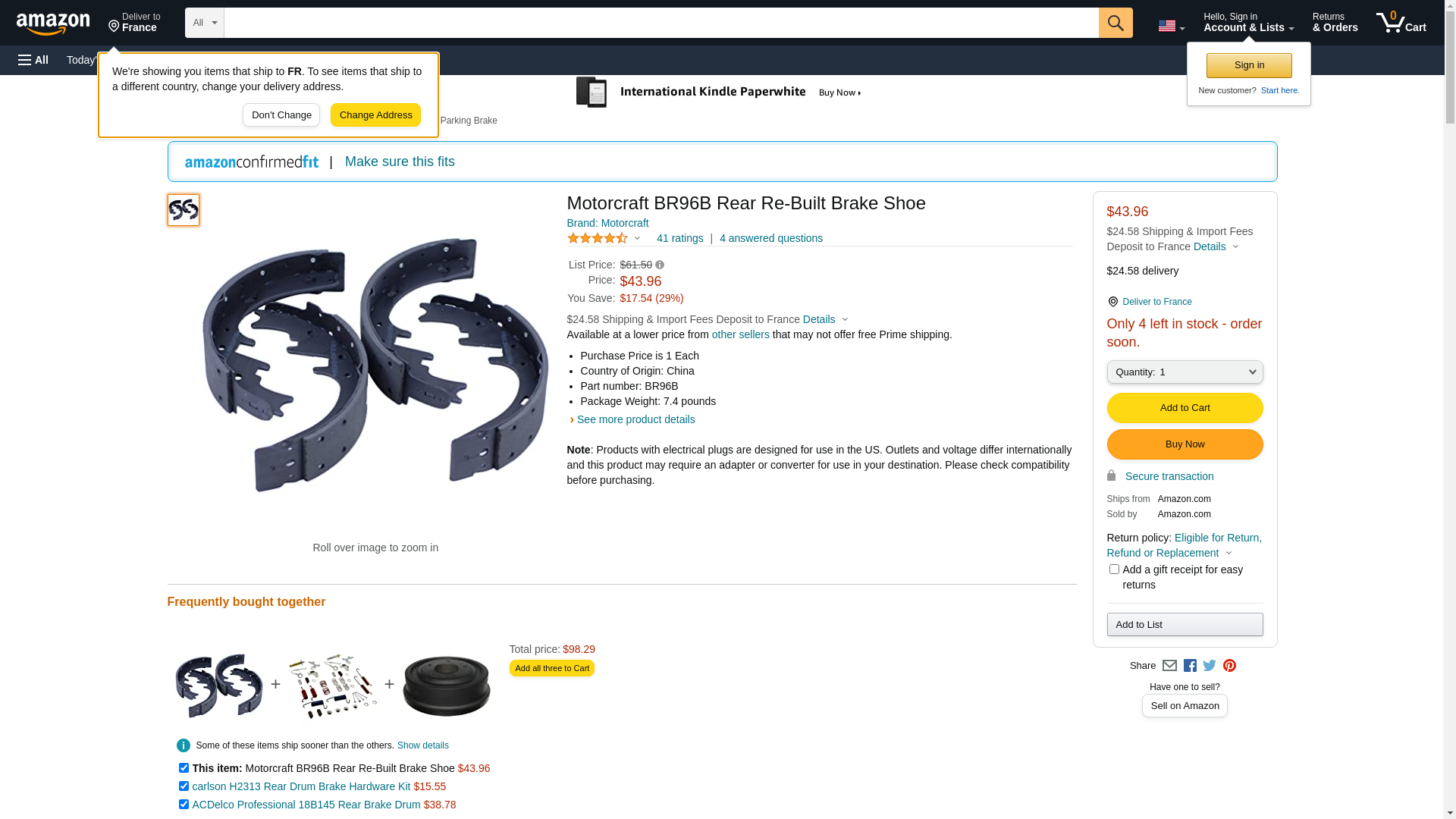 Motorcraft BR96B Rear Re-Built Brake Shoe