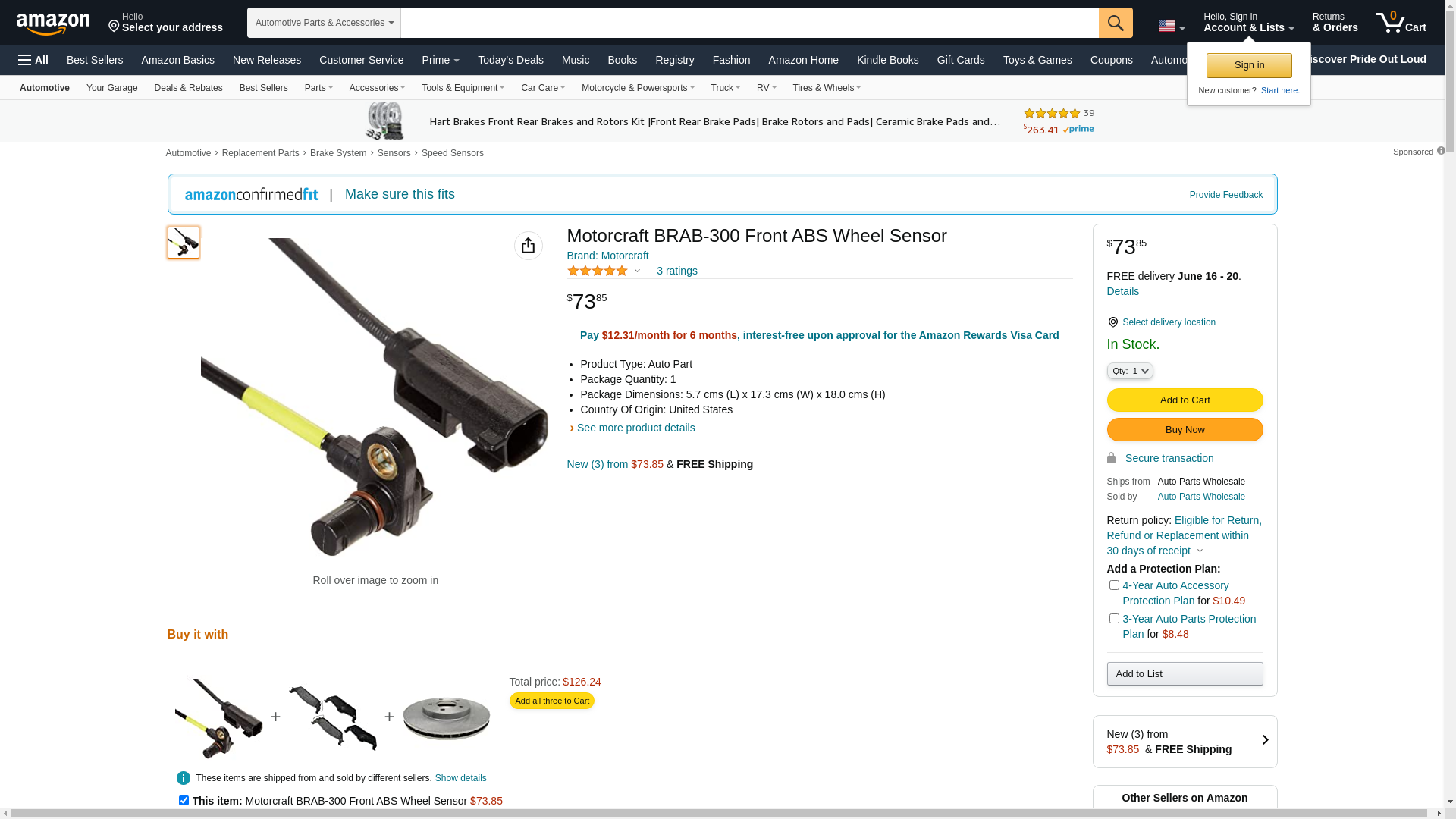 Motorcraft BRAB-300 Front ABS Wheel Sensor