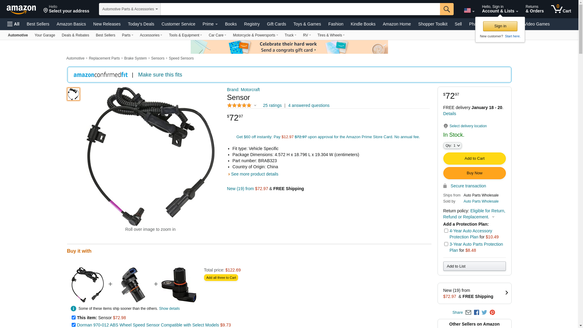 Motorcraft BRAB-323 ABS Wheel Speed Sensor