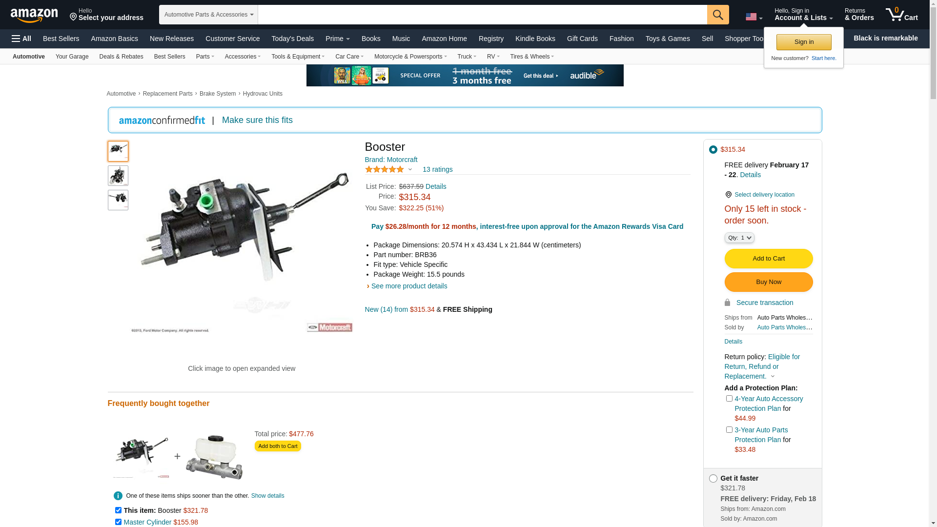 Motorcraft BRB36 Power Brake Booster Assembly
