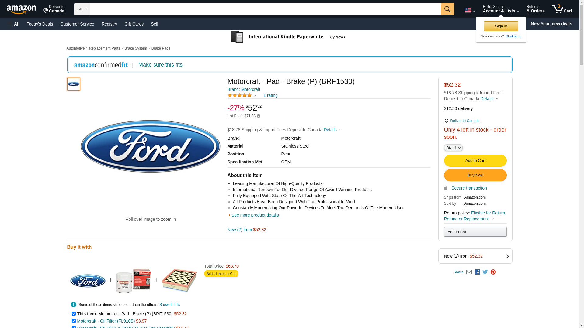 | StockWise Auto | MTC-BRF1530 | 1 | 1 | 1 @ $47.67 | |