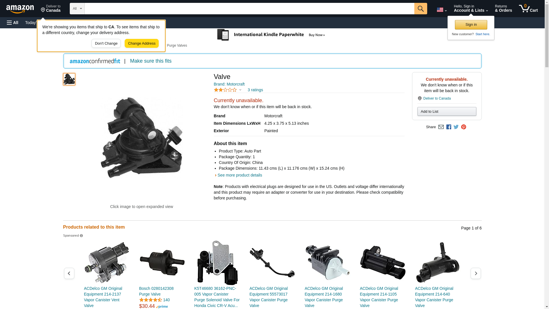 Motorcraft CX1796 Vapor Canister Purge Solenoid