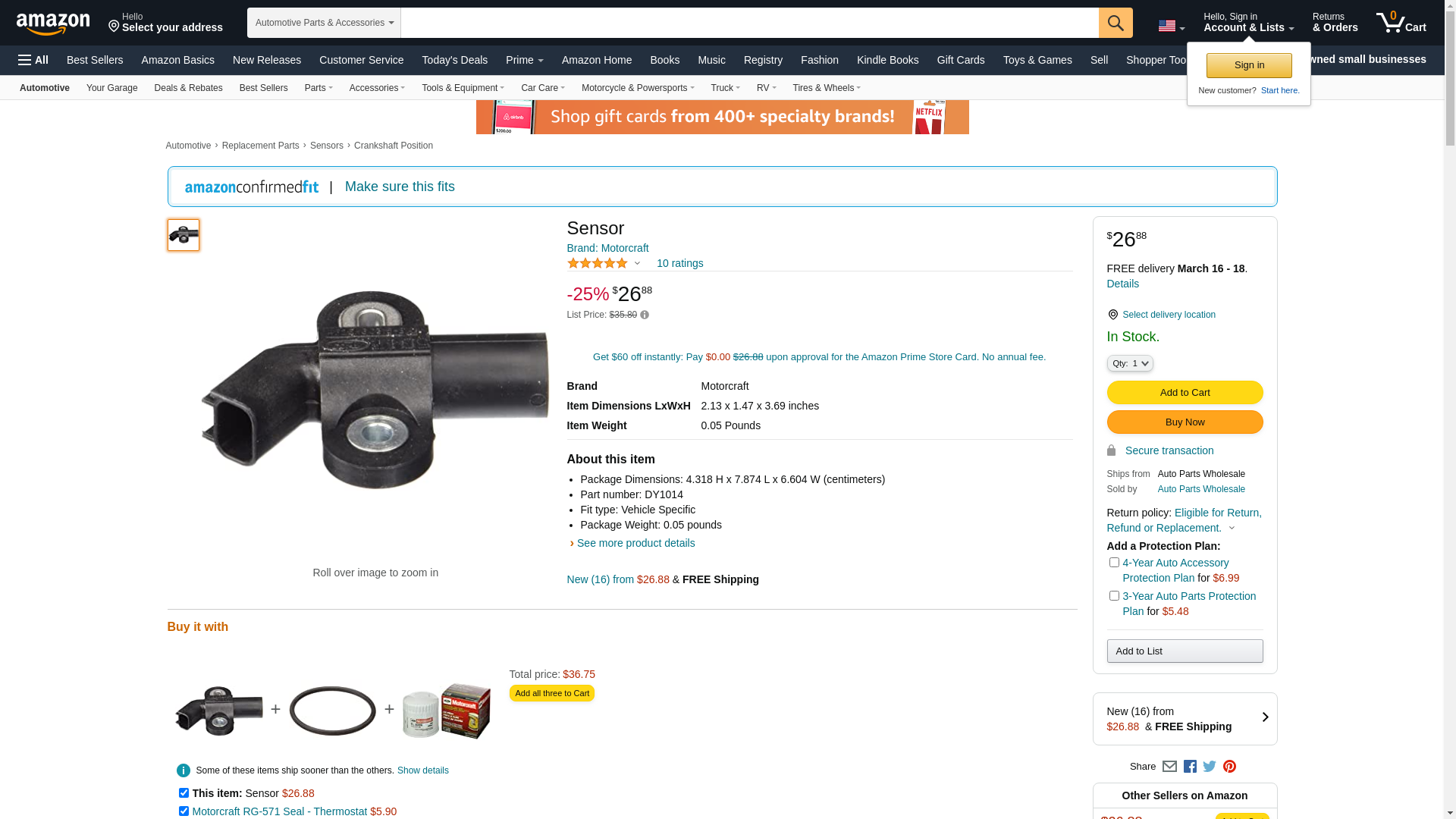 ![]() StockWise Auto | MTC-DY1014 | 1 | 1 | 1 @ $29.36 | |