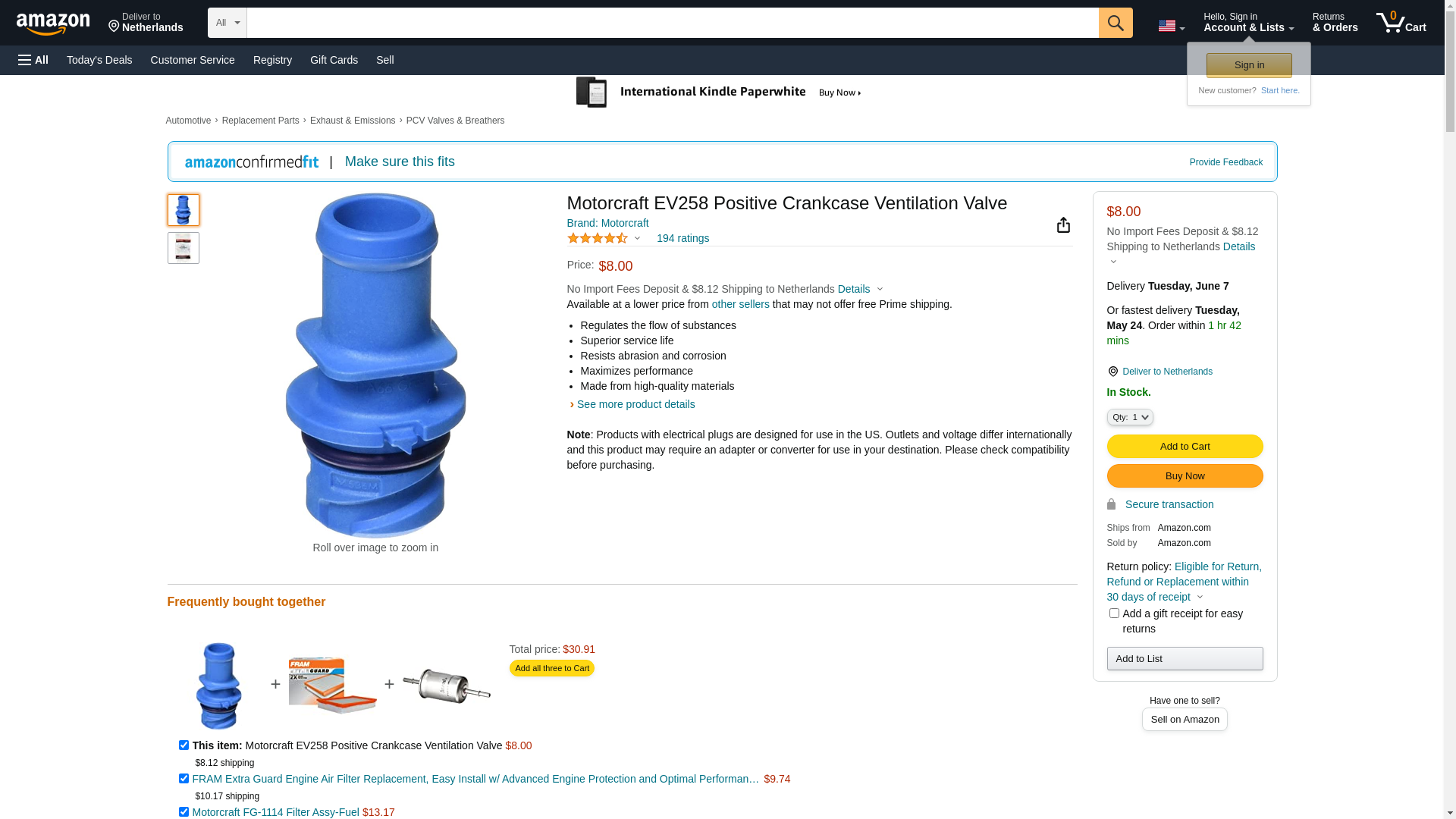 ![]() StockWise Auto | MTC-EV258 | 1 | 1 | 1 @ $5.70 | |