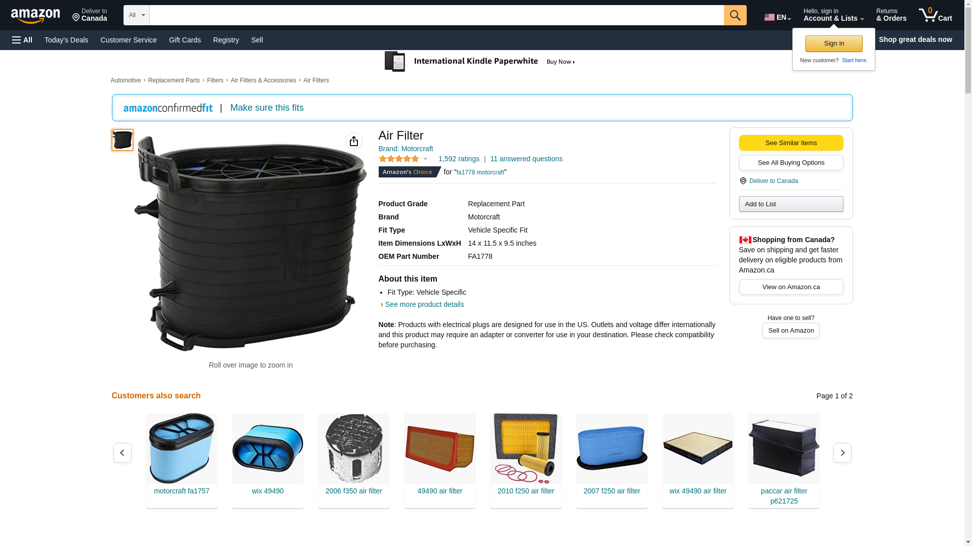 Qty 1 AFE FA1778 MOTORCRAFT Direct Replacement, AIR Filter