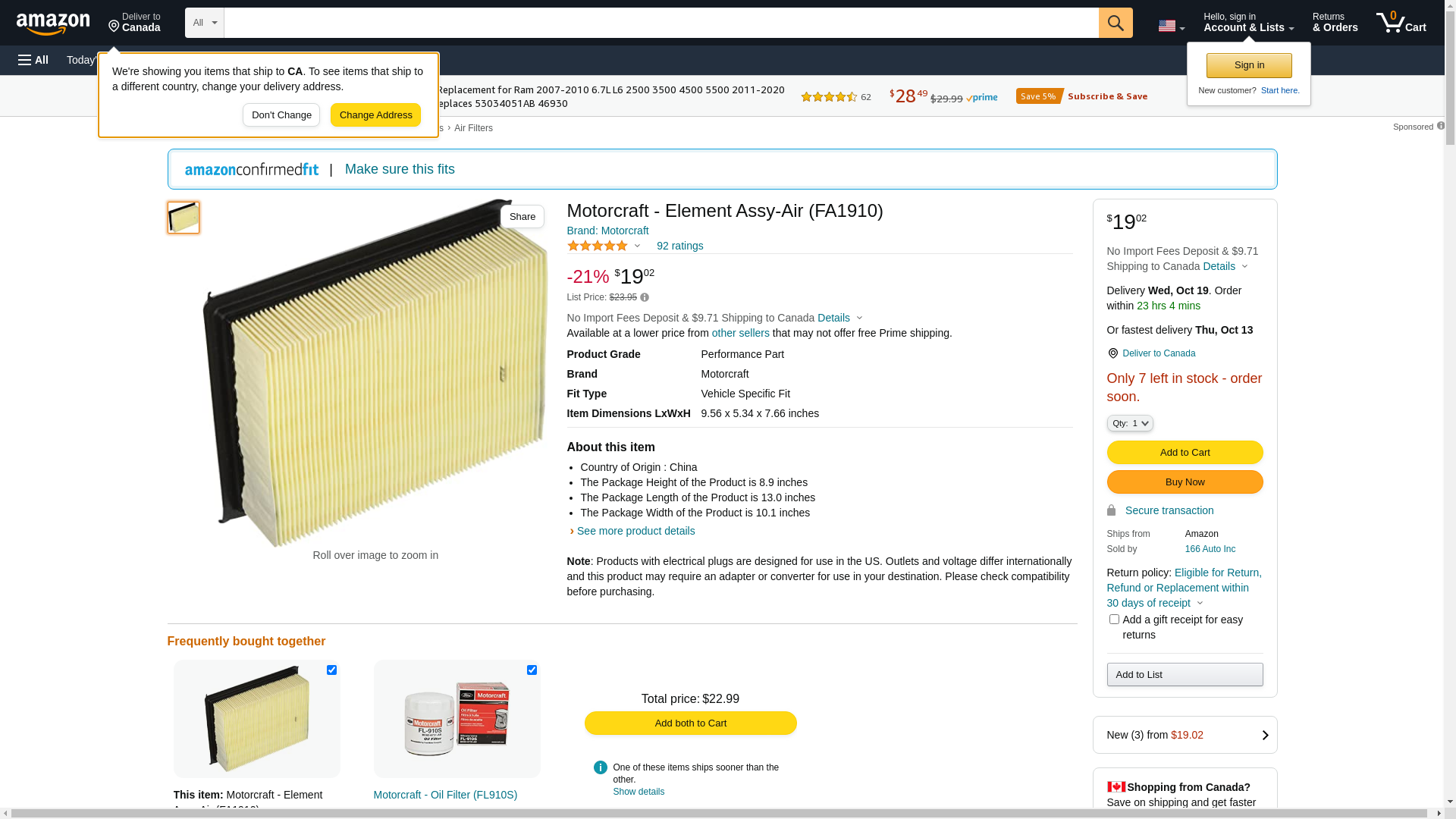 Motorcraft . FA1910