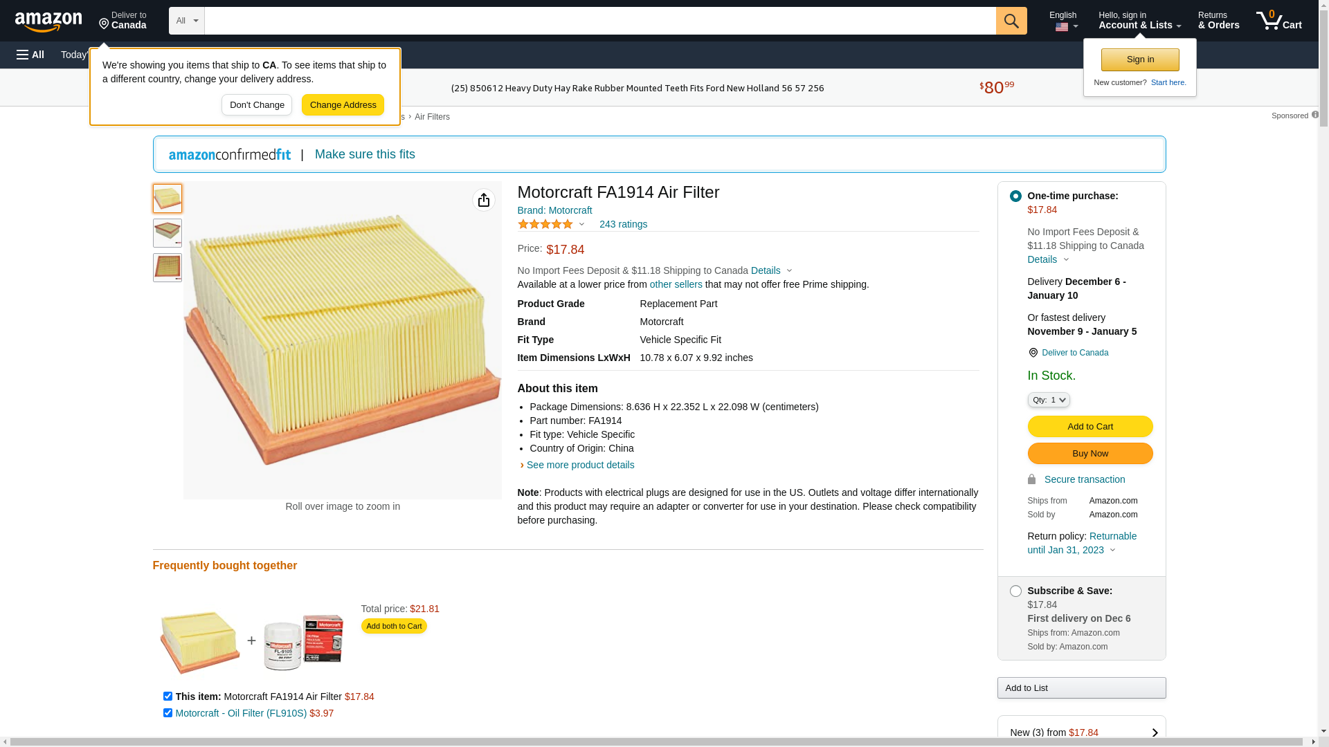 | StockWise Auto | MTC-FA1914 | 1 | 1 | 1 @ $12.20 | |
