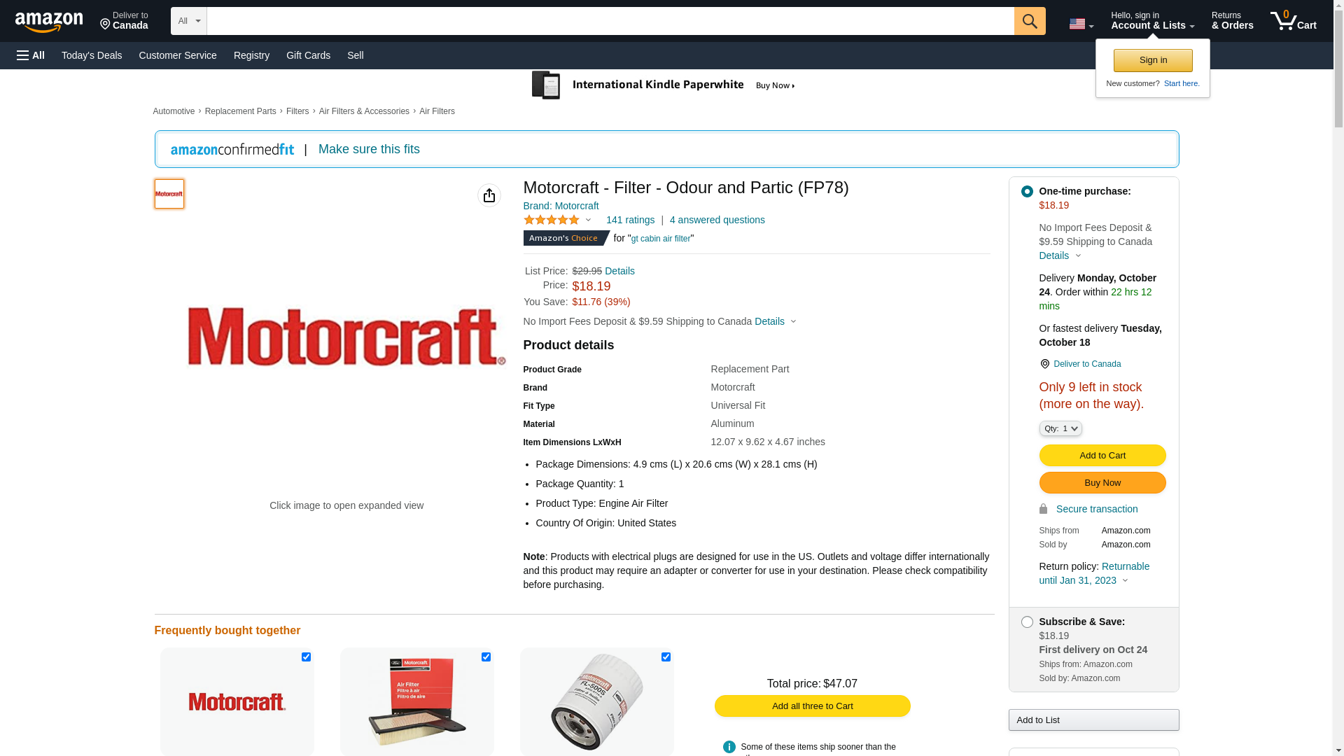Get the Best Performance with Motorcraft FILTER/ODOUR/PARTICLES FP78 parts at JEGS. Shop Now at the Guaranteed Lowest Price!