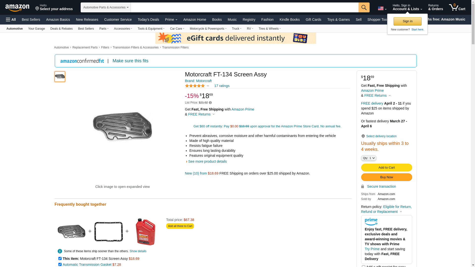 Motorcraft FT134 Automatic Transmission Filter Kit