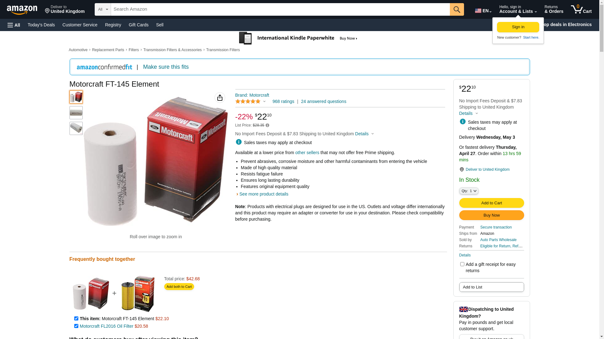 ![]() StockWise Auto | MTC-FT145 | 1 | 1 | 1 @ $19.72 | |