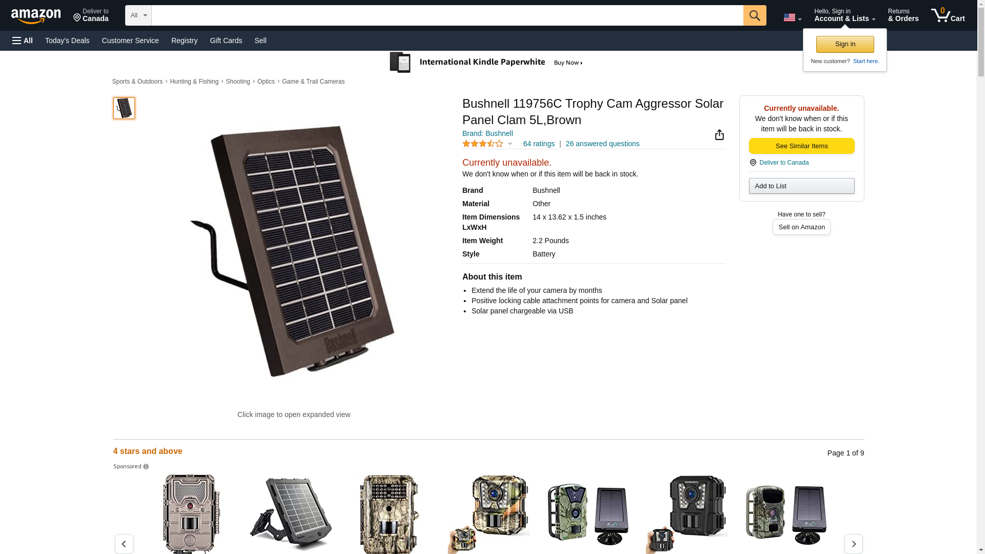 Bushnell 119756C Trophy Cam Aggressor Solar Panel Clam 5L,Brown