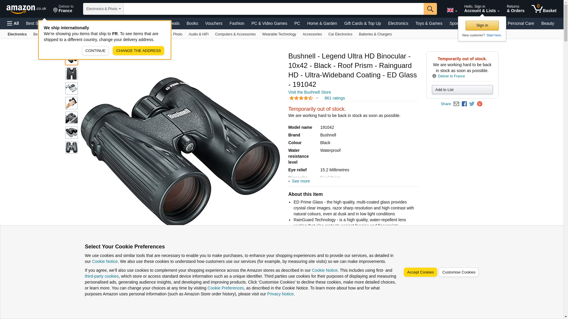 BUSHNELL 191042 10 x 42mm Legend Ultra HD Binoculars<br> ED prime glass ; Ultra-wide band coating; Rainguard(R) HD water-repellent lens coating ; Ultra wide field-of-view ; Long eye-relief ; Lightweight, magnesium chassis ; Waterproof/fogproof ; Soft touch grips ; Locking diopter ; Includes premium carrying case, neckstrap, Microfiber(R) lens cloth & deluxe binocular harness