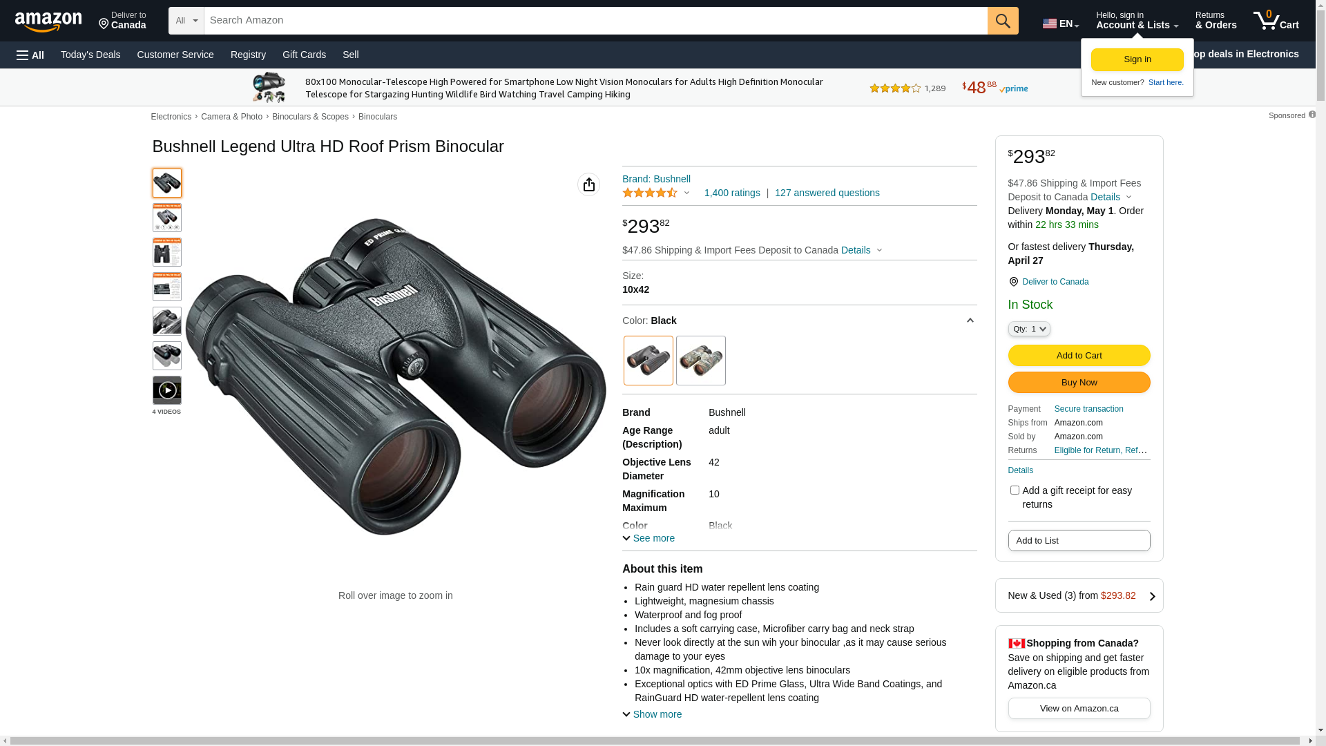 | Feature | BUSHNELL 191042 Legend Ultra HD 10 x 42mm Binoculars |
