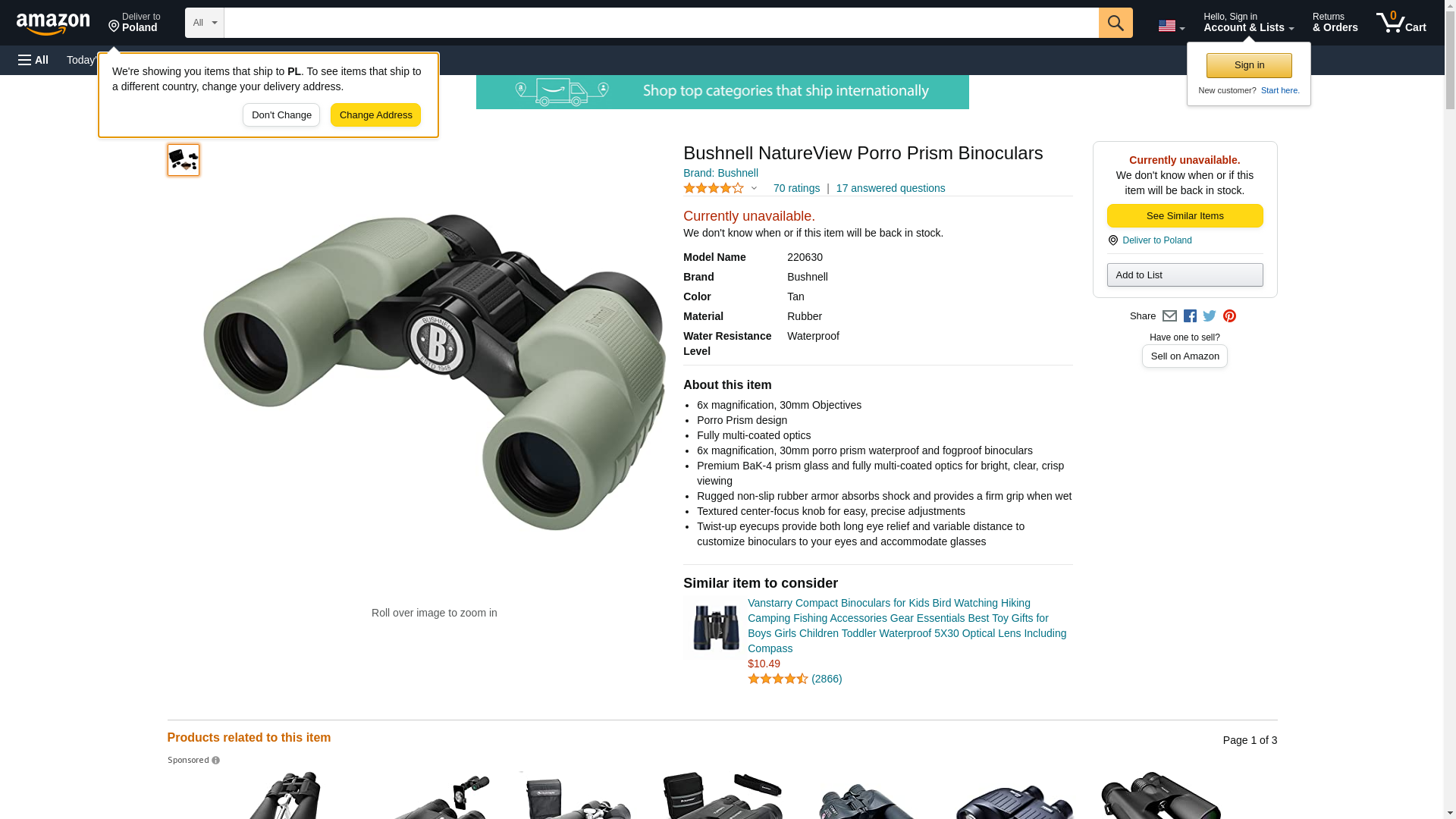 Bushnell NatureView 6 x 30mm Porro Prism Waterproof/Fogproof Binoculars, Tan