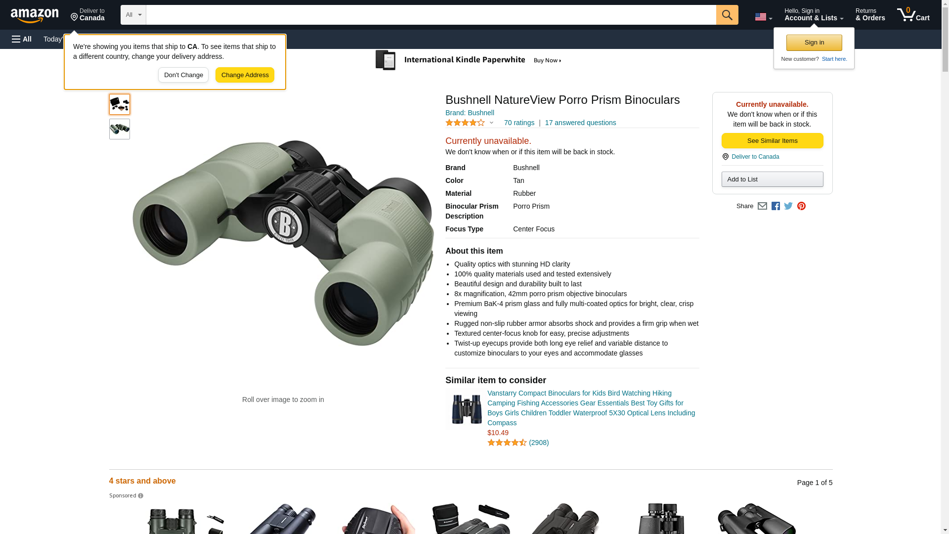 Bushnell NatureView 8 x 42mm Porro Prism Binoculars, Tan