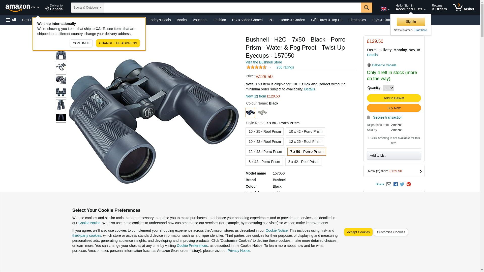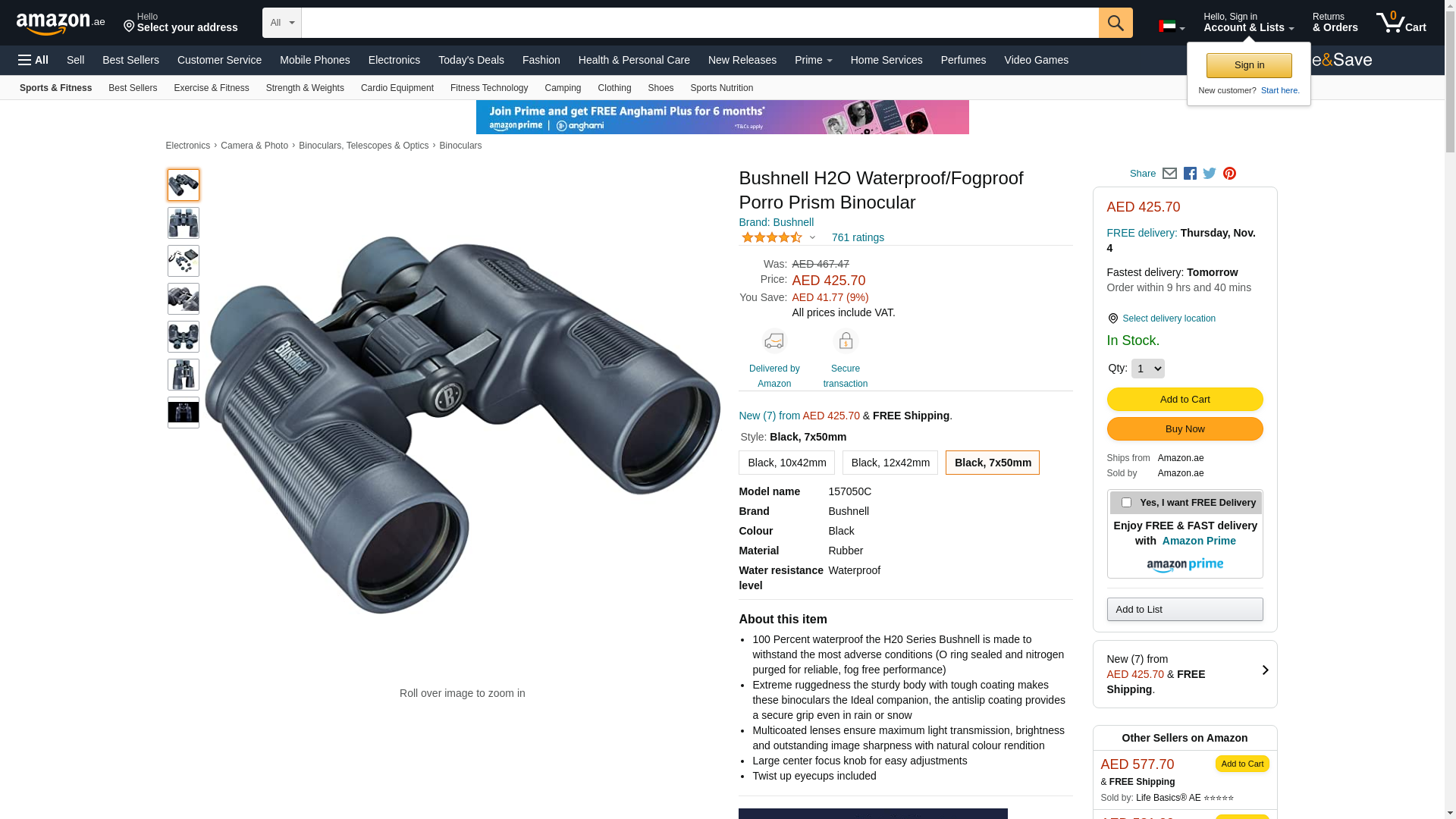 - Bushnell H2O Binocular 7x50mm Black Porro BAK-4, WP/FP, Twist Up Eyecups, Box 6L