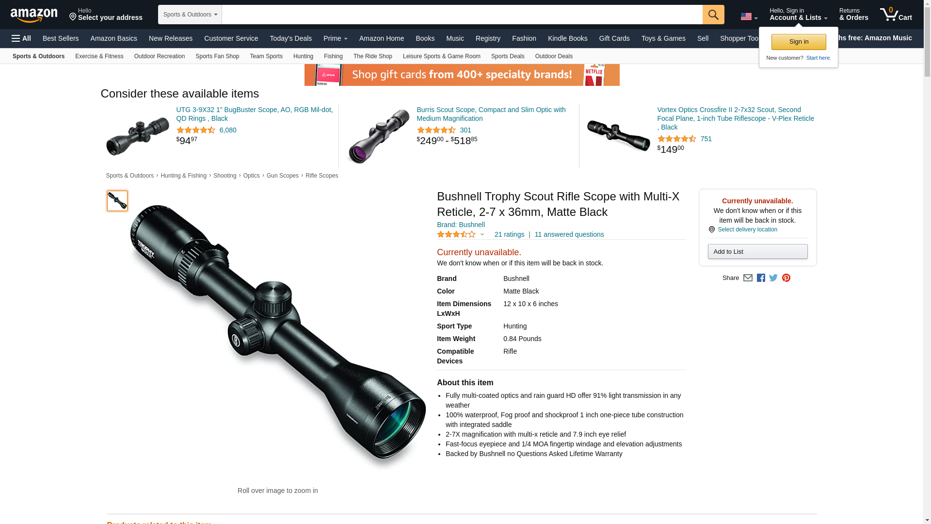 Bushnell Trophy Scout Rifle Scope with Multi-X Reticle, 2-7 x 36mm, Matte Black