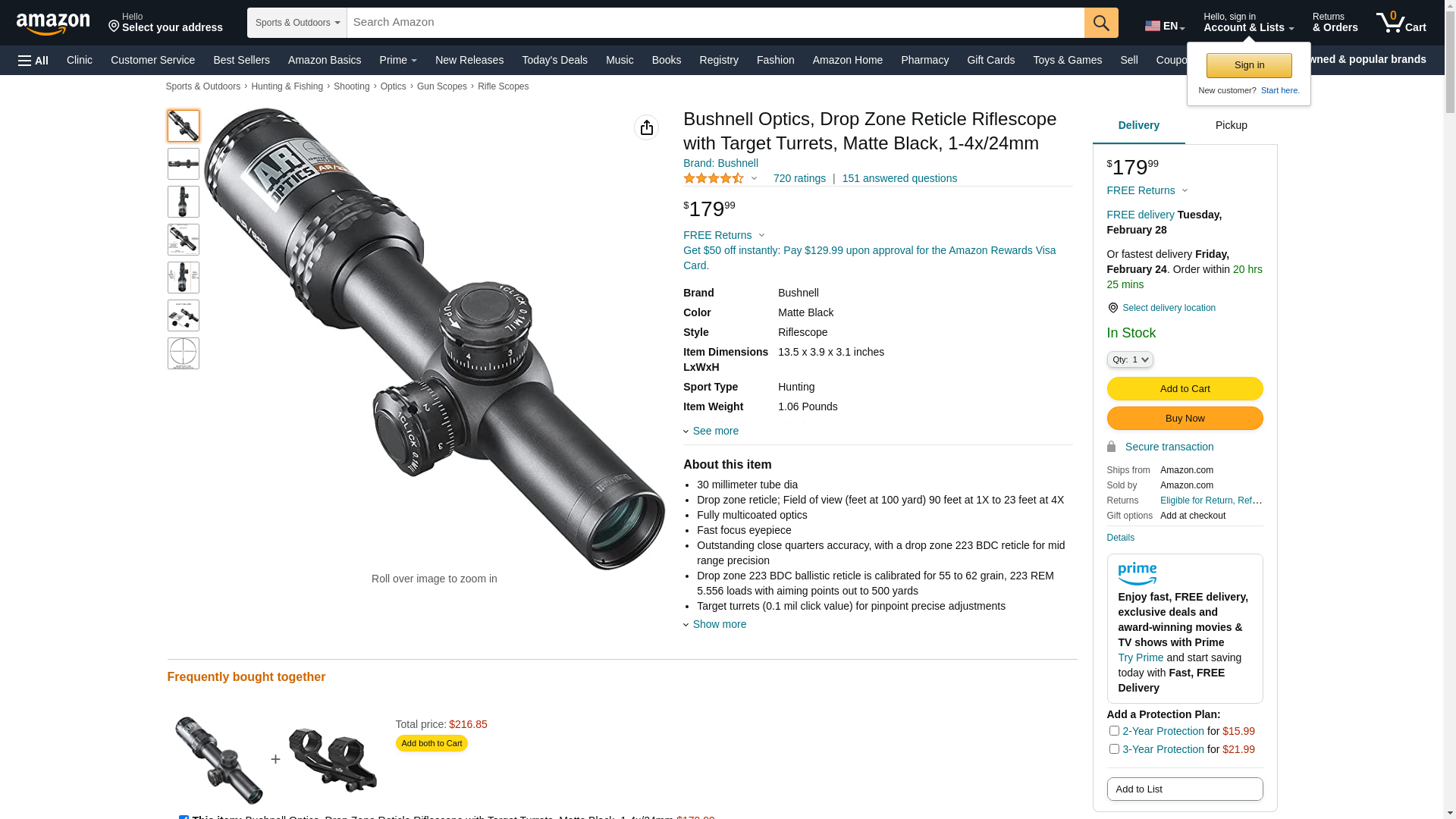 Bushnell Optics, Drop Zone Reticle Riflescope with Target Turrets, Matte Black, 1-4x/24mm