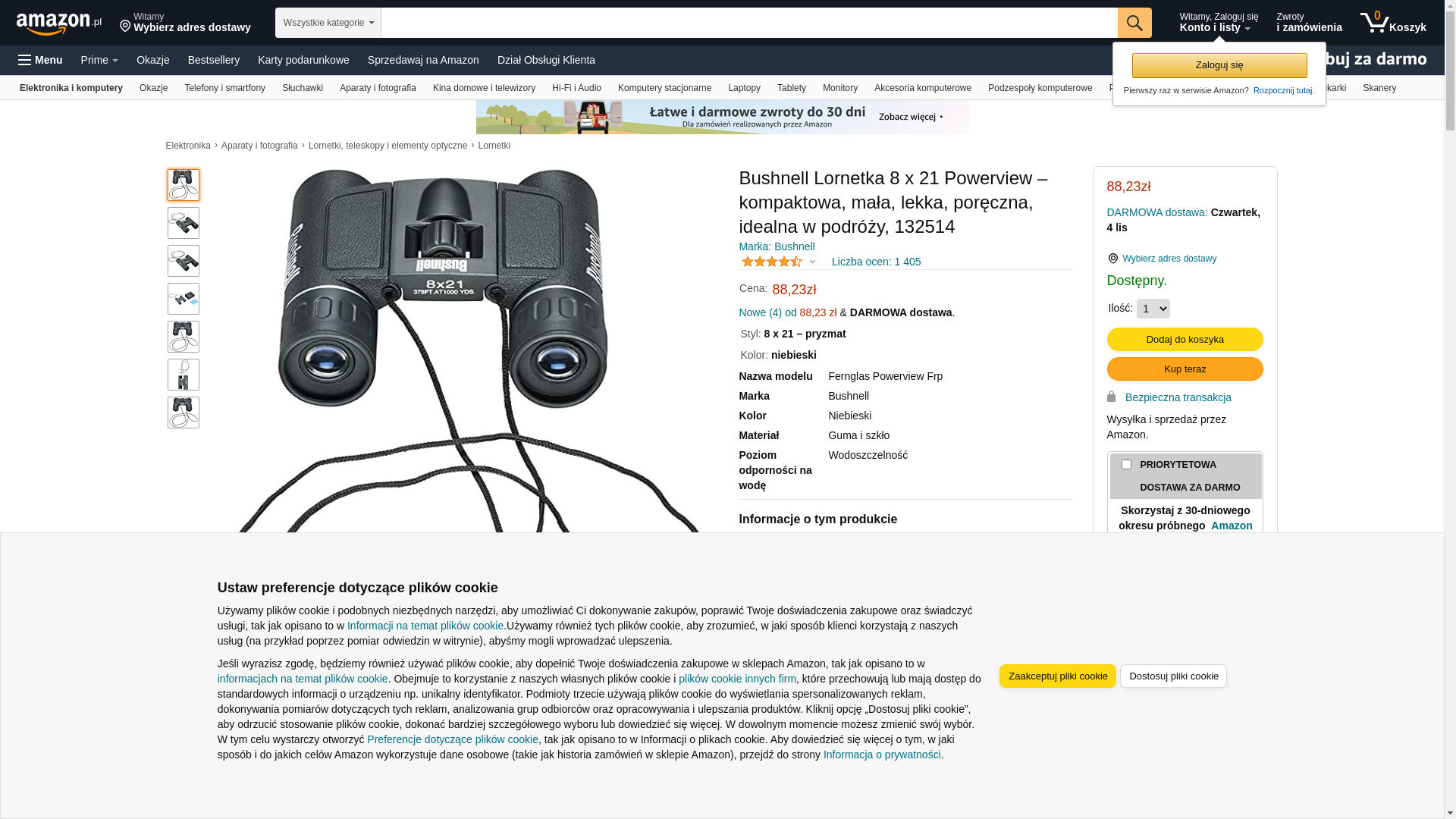 - Roof-prism binocular with 8x magnification and 21-Millimeter objective diameter