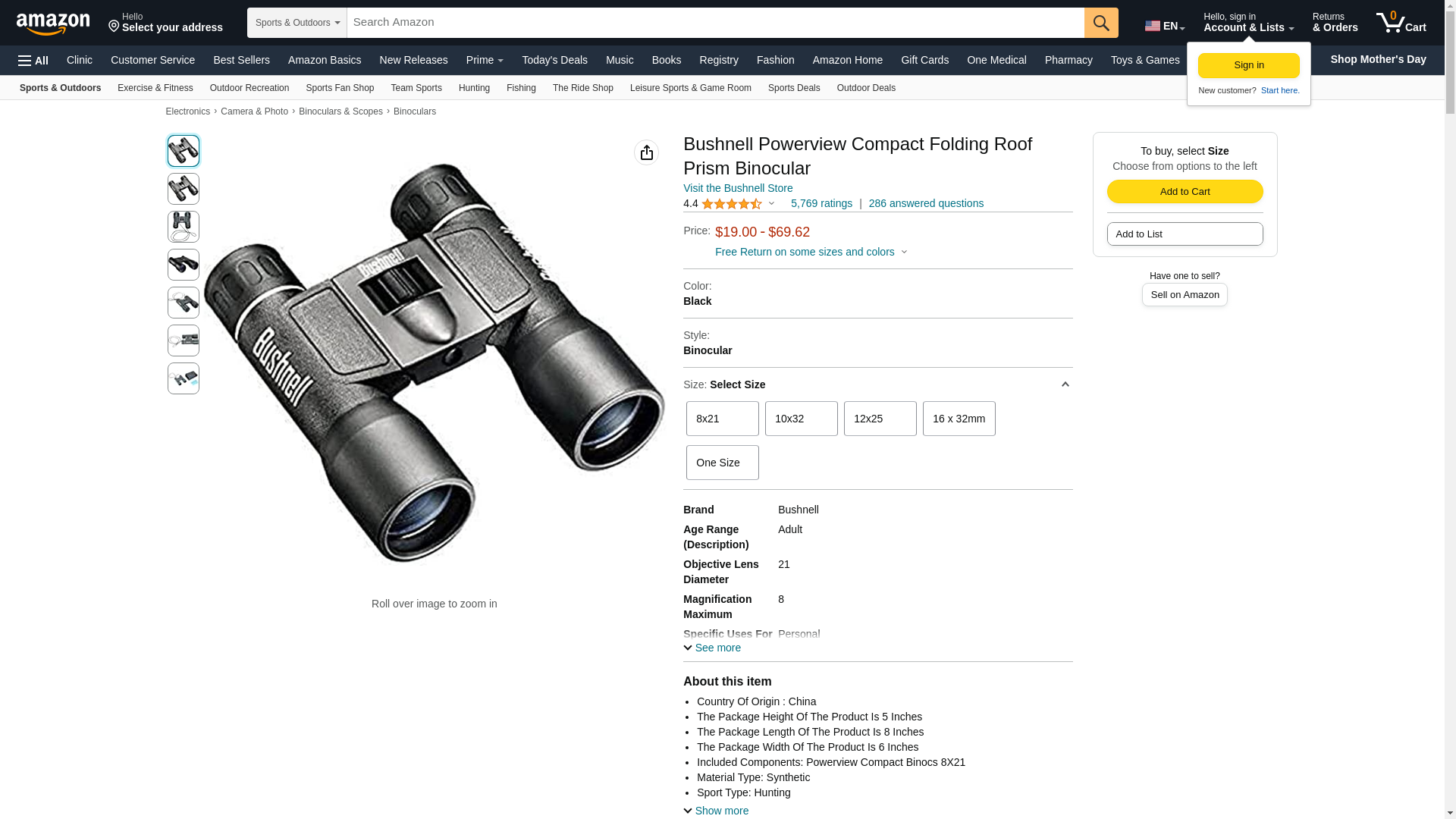 Bushnell Powerview Compact Folding Roof Prism Binocular: Maxedbuy.com