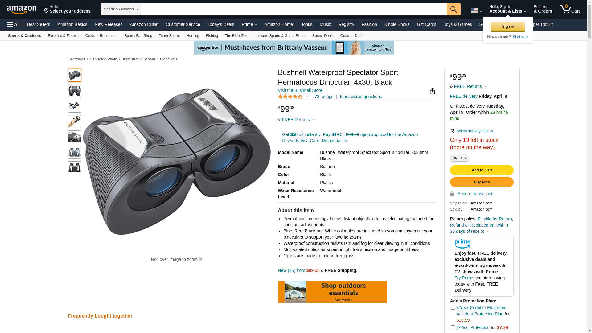 Bushnell Waterproof Spectator Sport Permafocus Binocular, 4x30, Black