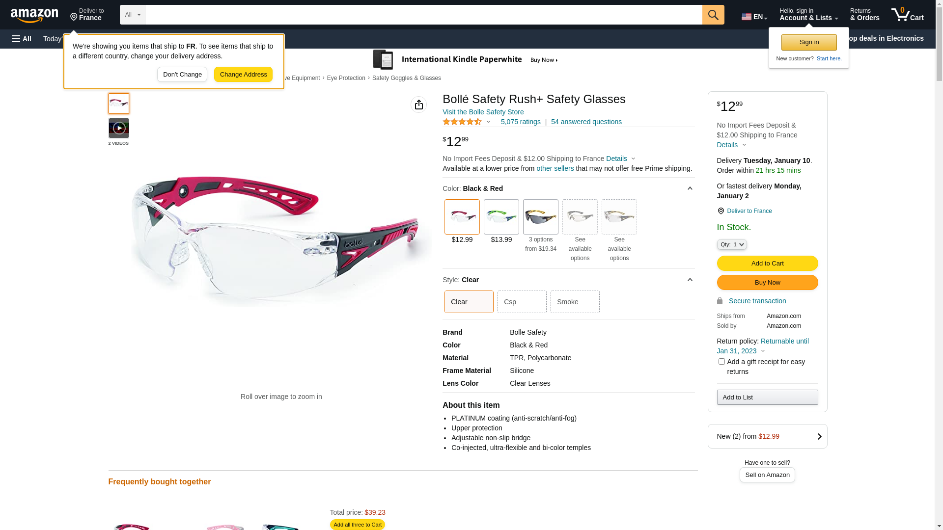 Bolle Safety 41080 Rush+ Safety Glasses, Black & Red Frame, Clear Lenses