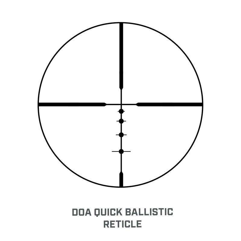 - DEAD-ON HOLDS OUT TO EXTREME RANGE: The DOA Quick Ballistic Reticle has six dead-on aiming points out to the incremental ranges specified in the Bushnell Ballistic app for your chambering and load. Aiming points also include wind-hold lines calibrated for a 5-mph crosswind at each distance.