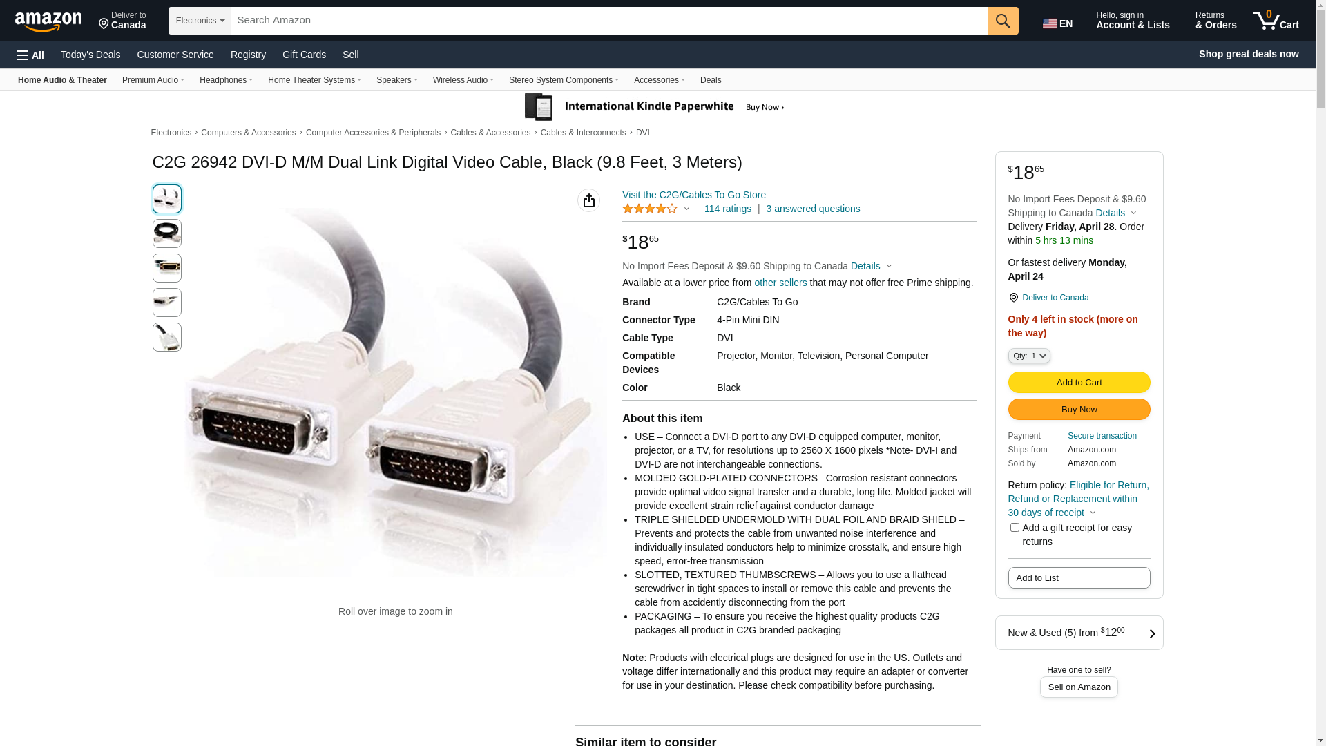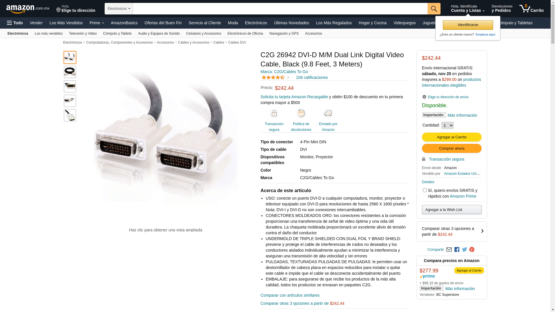 | Feature | Cable Type: Display cable| Cable Technology: Triple Shielded| Left Connector Type: 24 pin DVI-Digital (Dual-Link)| Left Connector Gender: Male| Right Connector Type: 24 pin DVI-Digital (Dual-Link)| Right Connector Gender: Male| Features: Gold plated connectors| Length: 9.843 feet| Color: Black| Service & Support Type: Limited lifetime warranty |