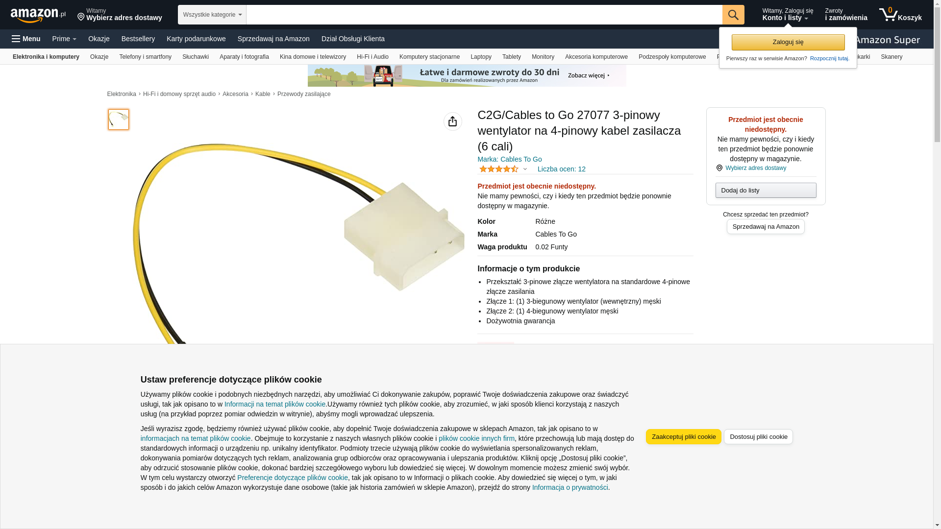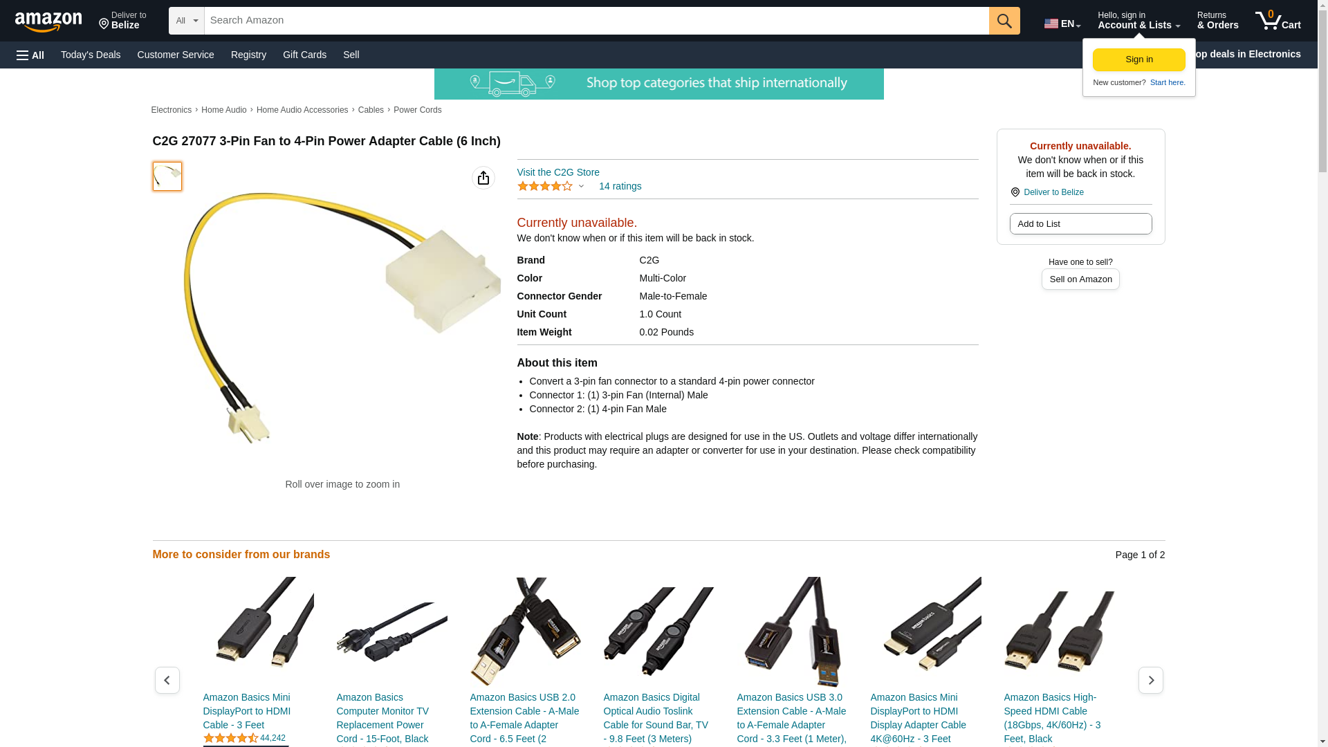 C2G 27077 3-Pin Fan to 4-Pin Power Adapter Cable (6 Inch)