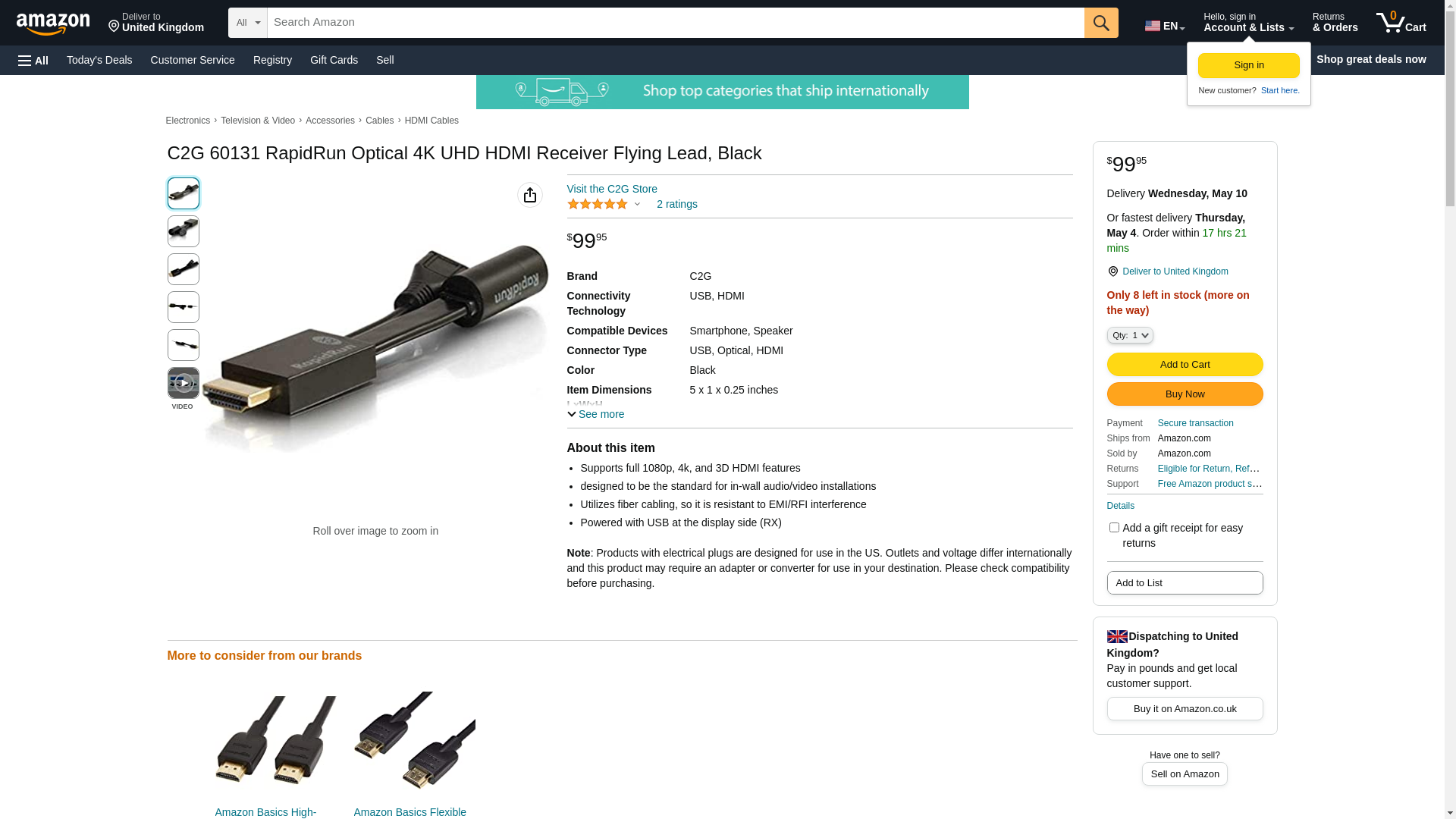 C2G 60131 RapidRun Optical 4K UHD HDMI Receiver Flying Lead, Black