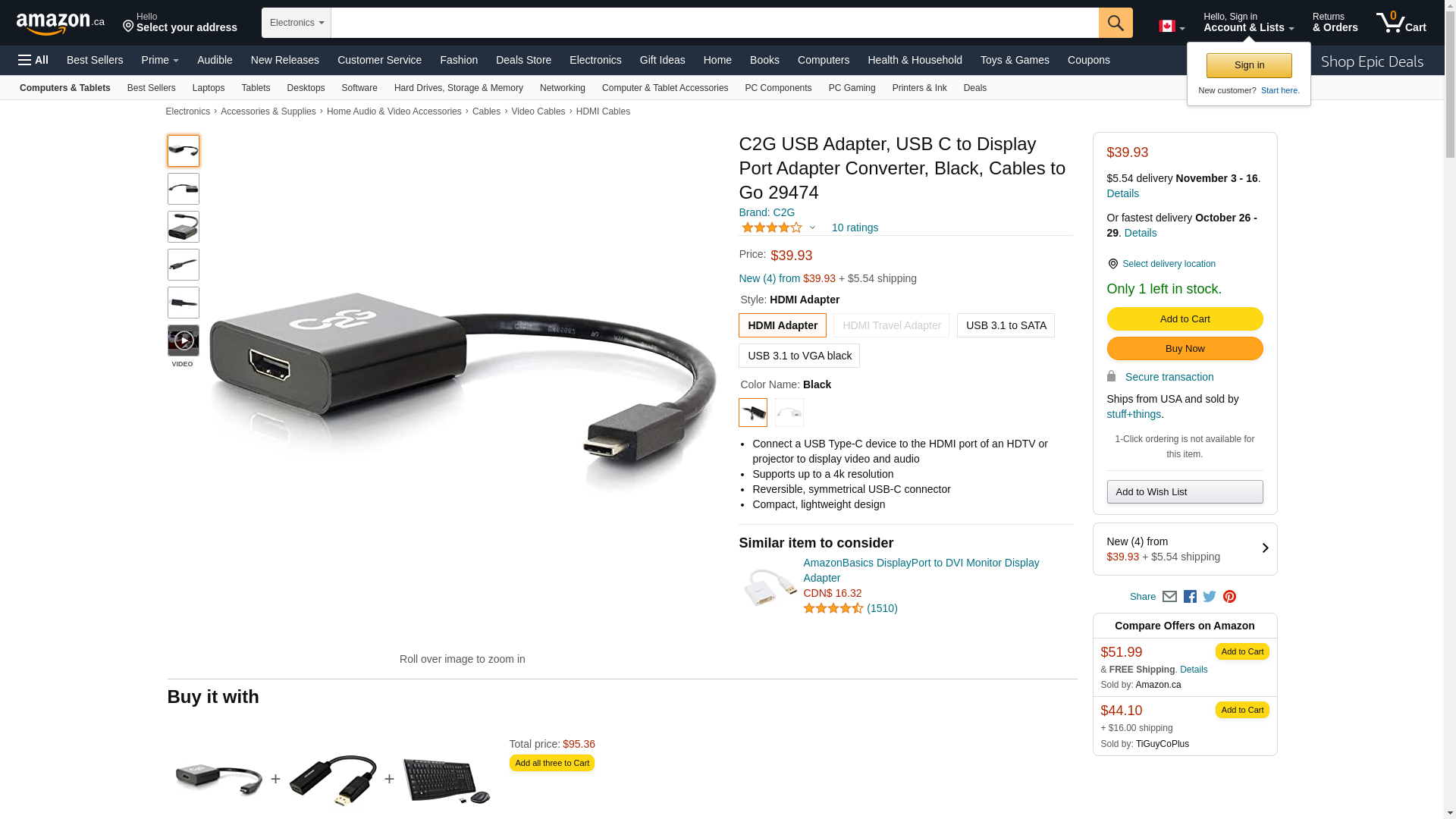 C2G/Cables to Go 29482 USB-C to HDMI Audio/Video Adapter, TAA Compliant, Black