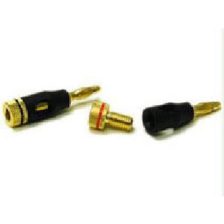 These banana plugs deliver excellent sound quality for today's audio and home theater applications, and will help your system perform at its highest ability. They are constructed with 24K gold plating that provides ultra low loss signal transfers and resists deterioration. Corrosion-resistant and precision-machined, these connectors ensure superior fit and long-lasting quality.They can receive up to 8 AWG wire, can accept two-way cable entrance for quick and easy installation, and the stackable design makes cable management easier. Each package contains two black- and two red-coded connectors for quick identification.