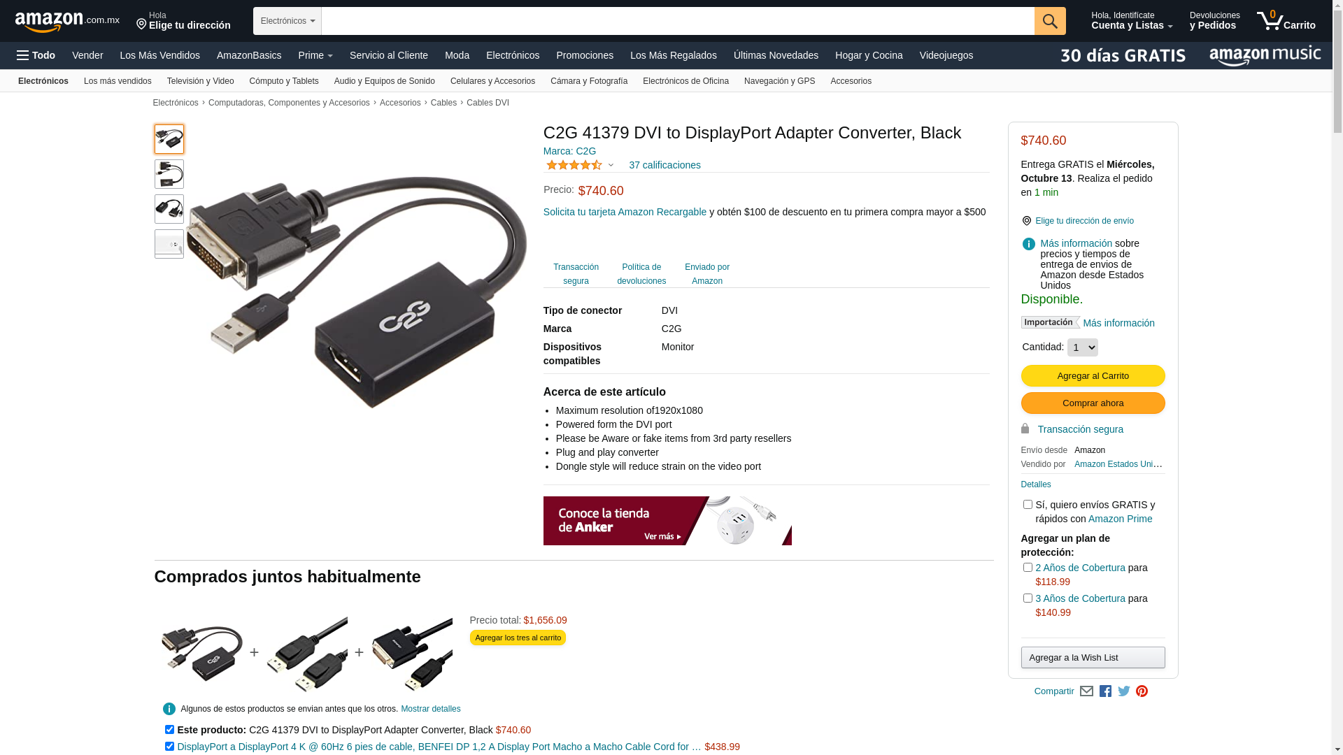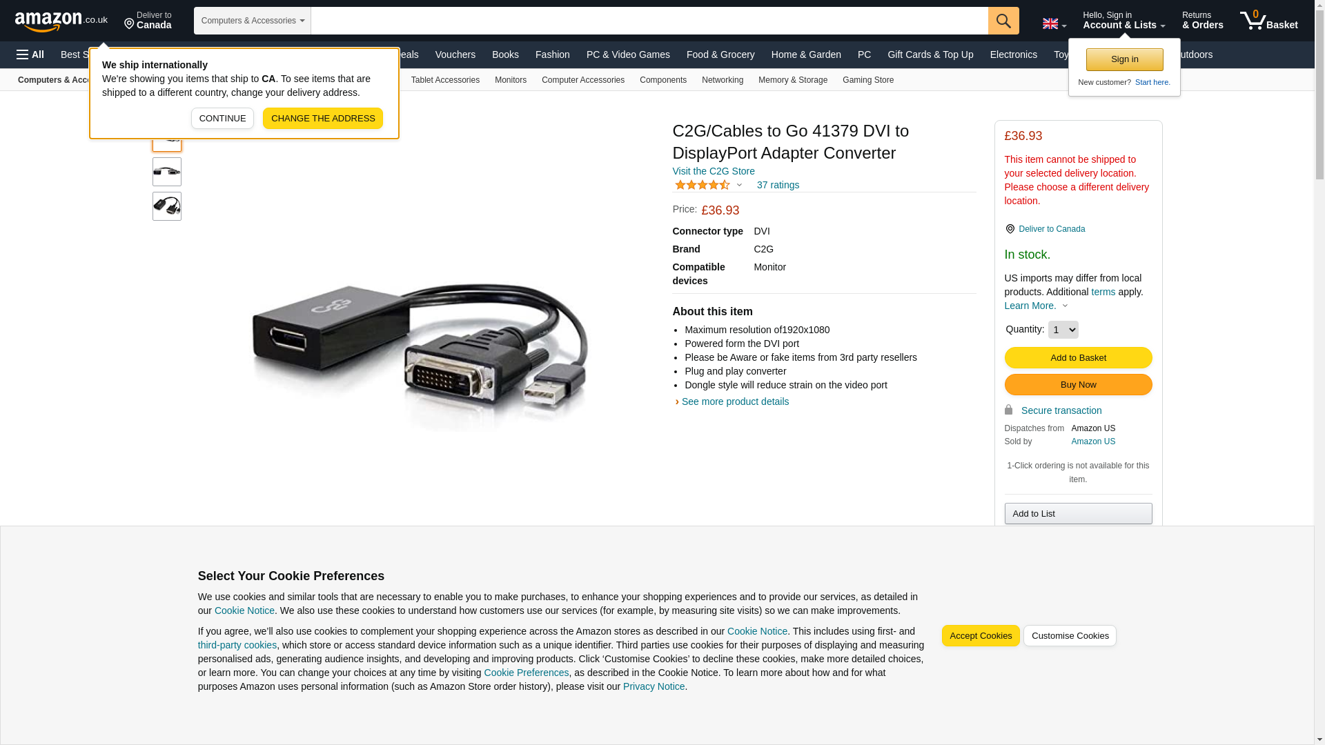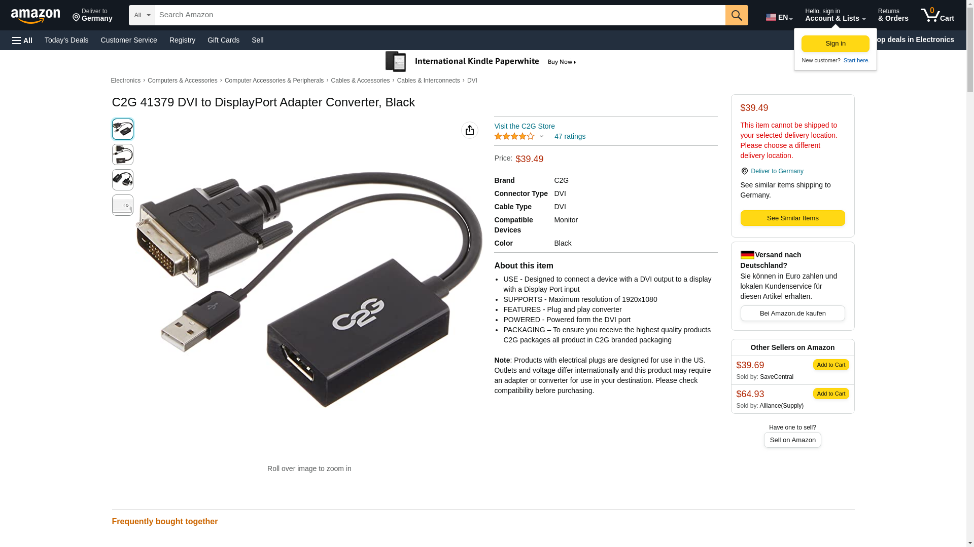 C2G 41379 DVI MALE TO DP FEMALE ADAPTER CONVERTER