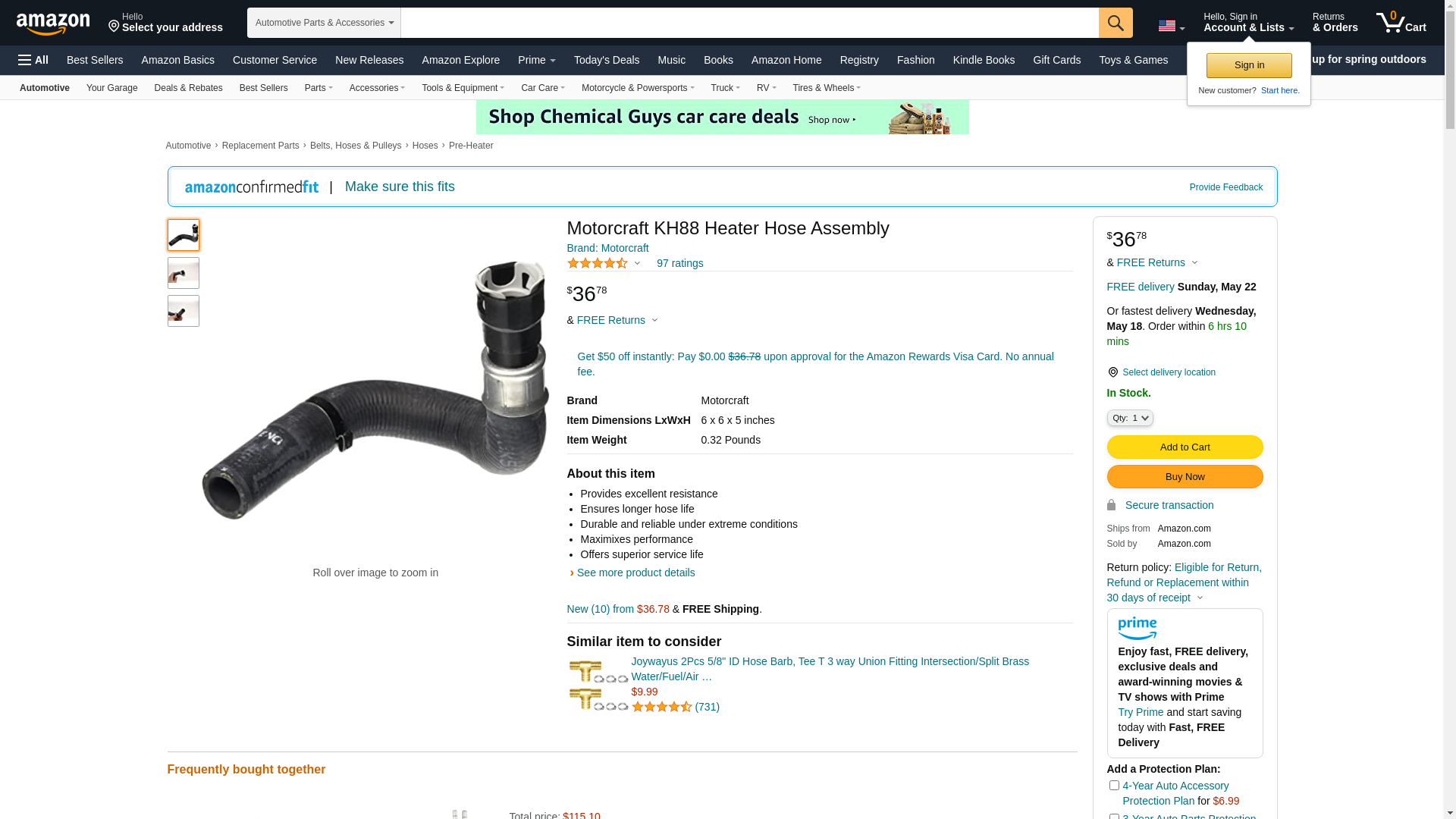 Motorcraft KH88 Heater Hose Assembly, Black