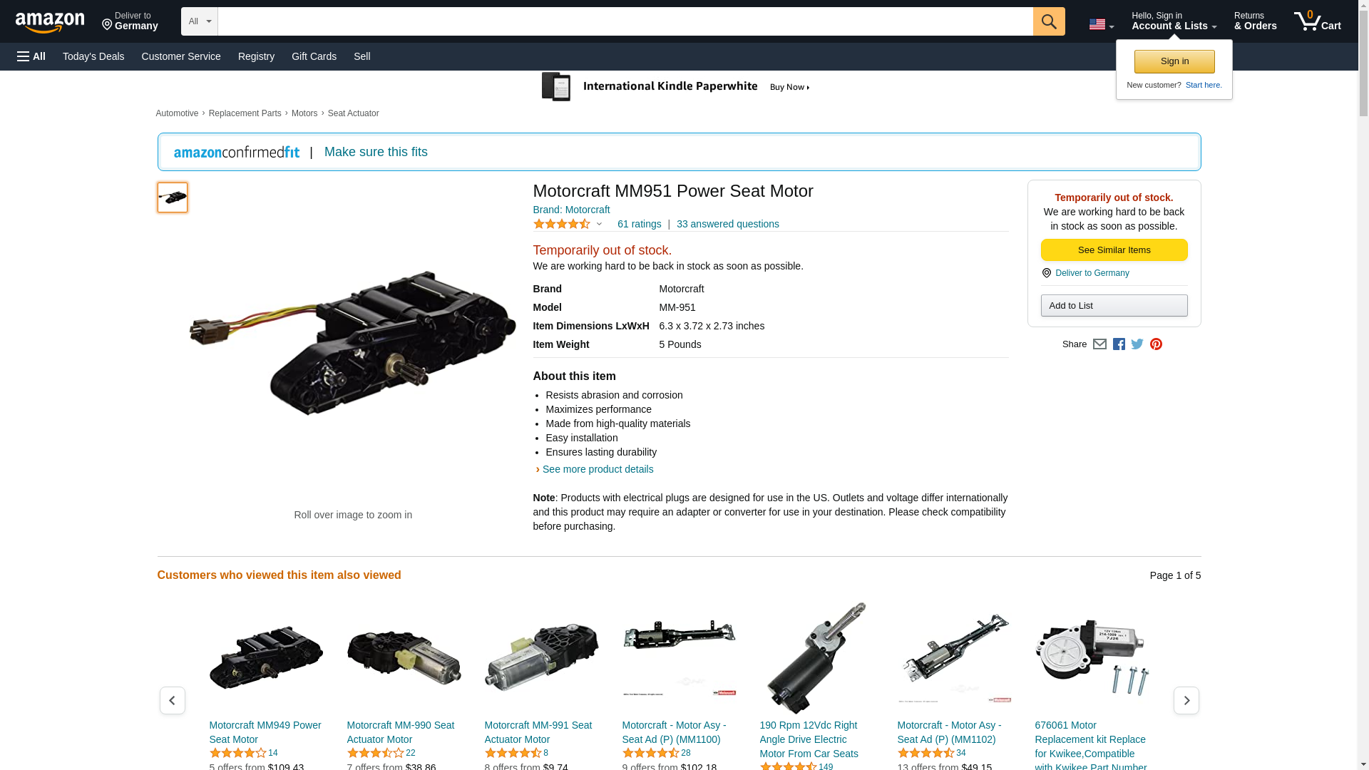 | JC Whitney | MIMM951 | 1 | -2 | 1 | 1 @ $163.79 |
