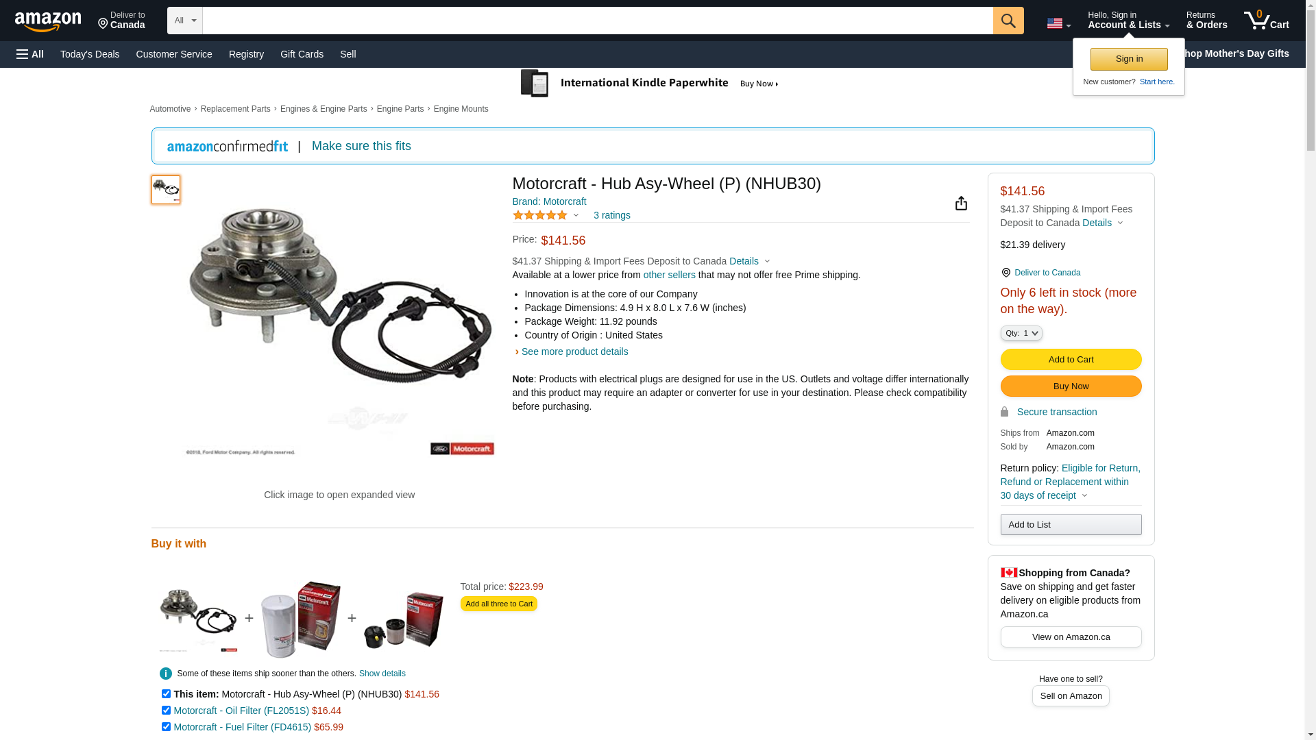 | StockWise Auto | MTC-NHUB30 | 1 | 97 | 1 | 1 @ $108.85 |