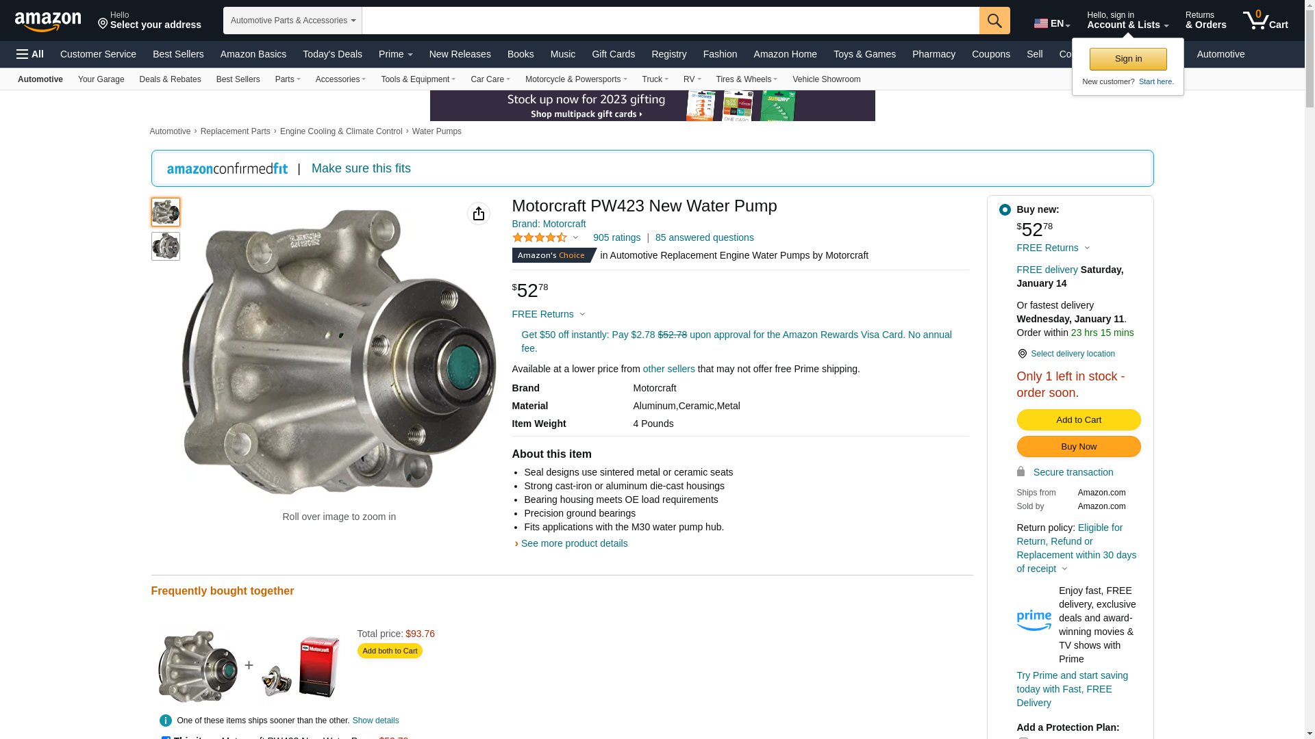 ![]() StockWise Auto | MTC-PW423 | 1 | 93 | 1 | 1 @ $37.50 |