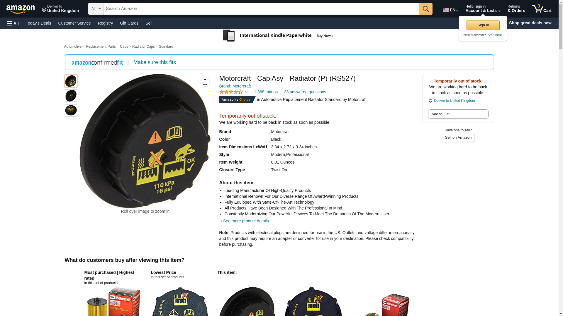 Motorcraft - Cap Asy - Radiator (P) (RS527)