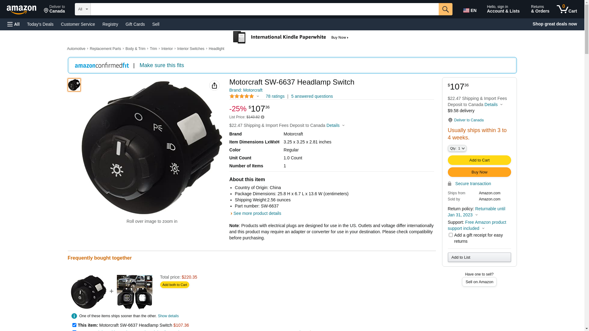 Motorcraft SW-6637 Headlamp Switch