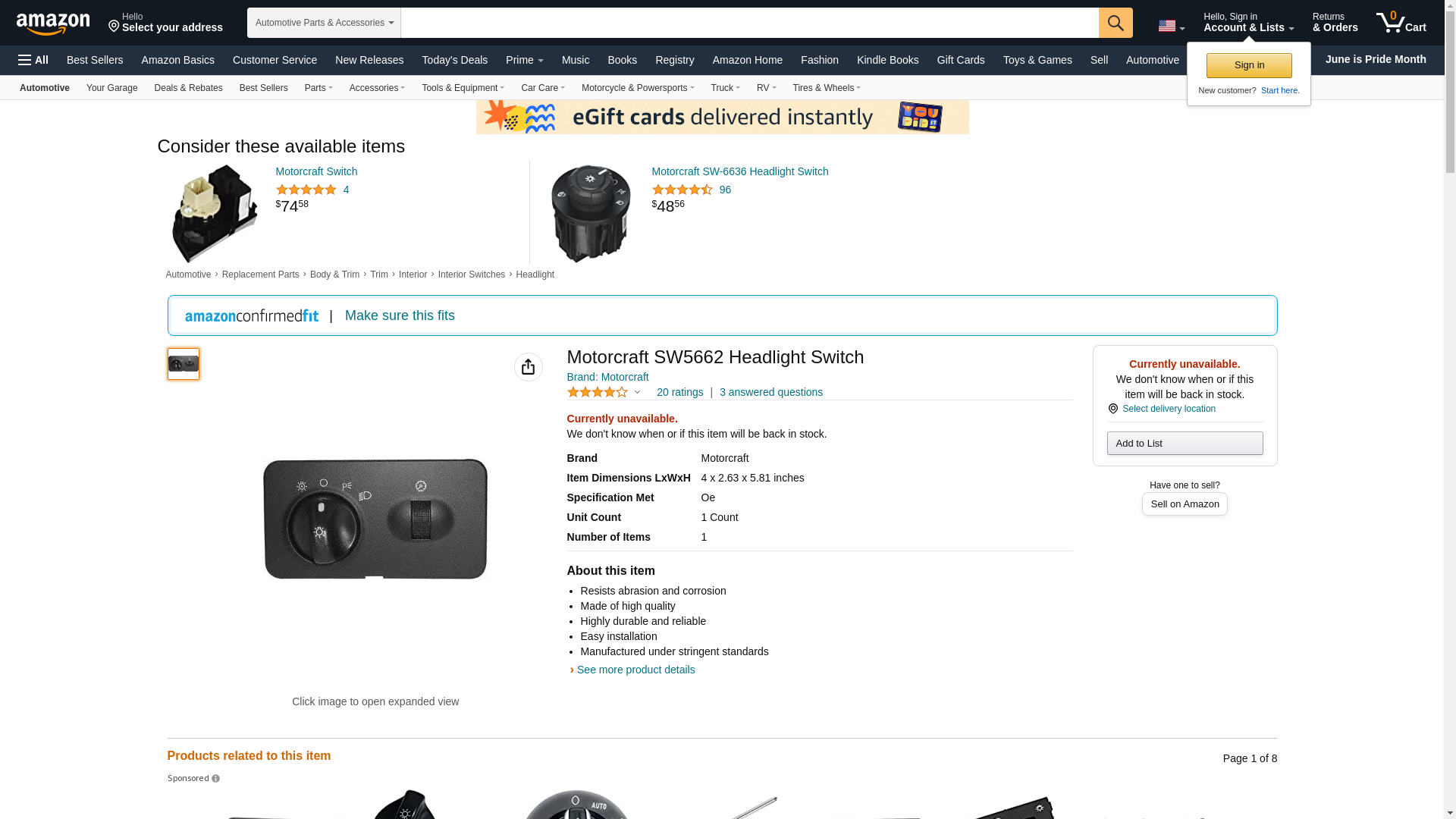 Motorcraft . SW5662